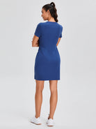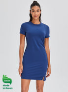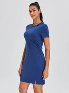 Navy 35" Crew-neck Short-sleeve Dress For Women