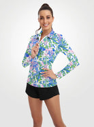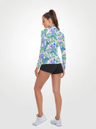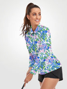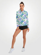 Pink and Blue Floral Quarter-zip Long-sleeve Polo Shirt for Ladies