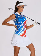 Unleash your bold side with our quarter-zip sleeveless polo shirt. It features a soft, 4-way stretch material that wicks away moisture and keeps you feeling comfortable while you dominate on the golf course, tennis court, or pickleball court. Show off your patriotism and celebrate in style with the eye-catching flag pattern. Go ahead, take on the day and conquer any challenge in these stylish and functional polo shirts!
