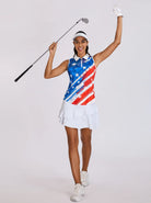 Blue Flag Pattern Quarter-zip Sleeveless Polo Shirts for Women