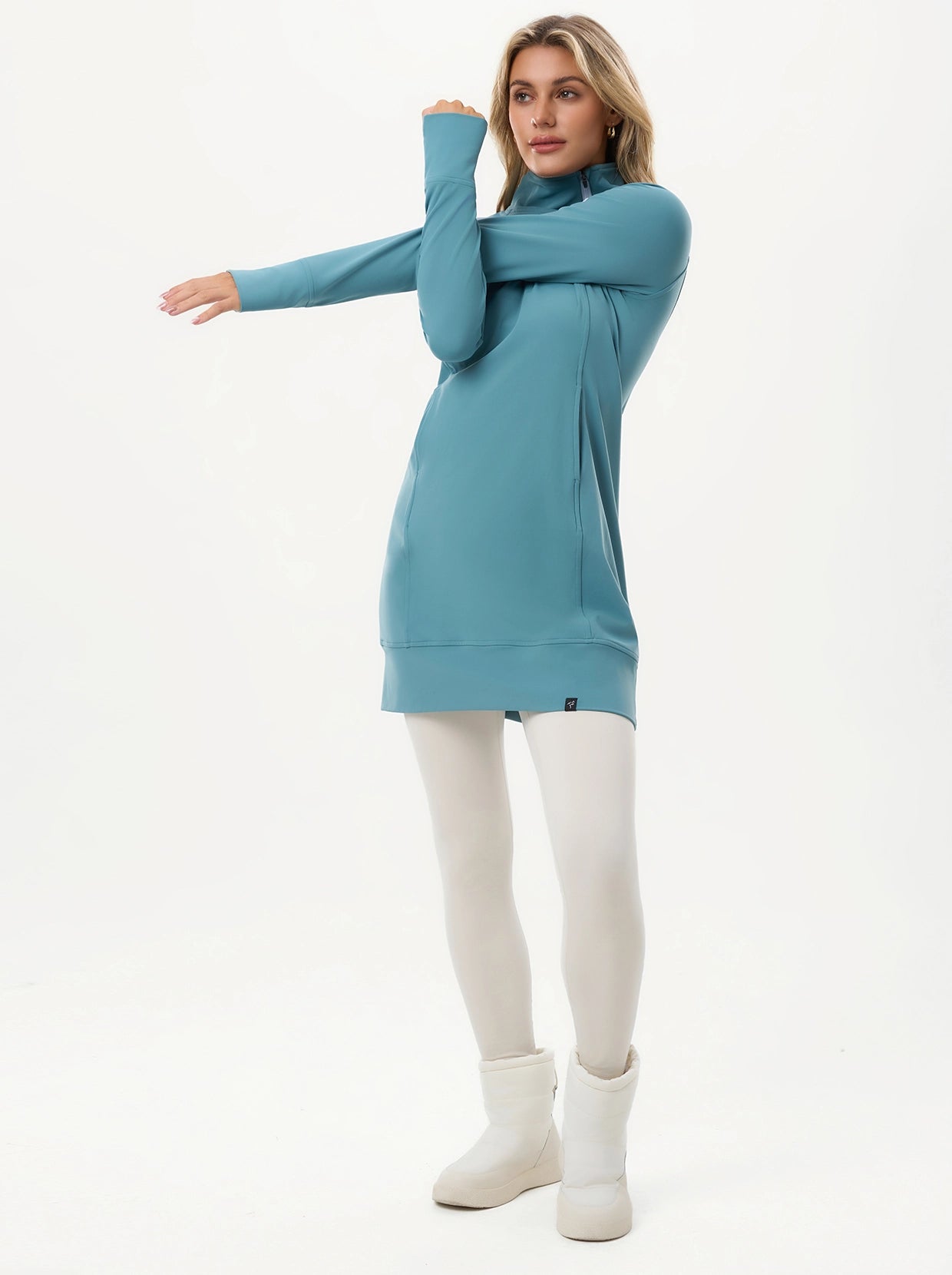 Slip into effortless style with this long-sleeve thermal dress designed for active days and cozy moments alike. The side zipper opens up endless layering possibilities, while thumbholes anchor your sleeves perfectly in place. Plus, a functional pocket keeps essentials within reach. Playful, practical, and ready for whatever comes next.