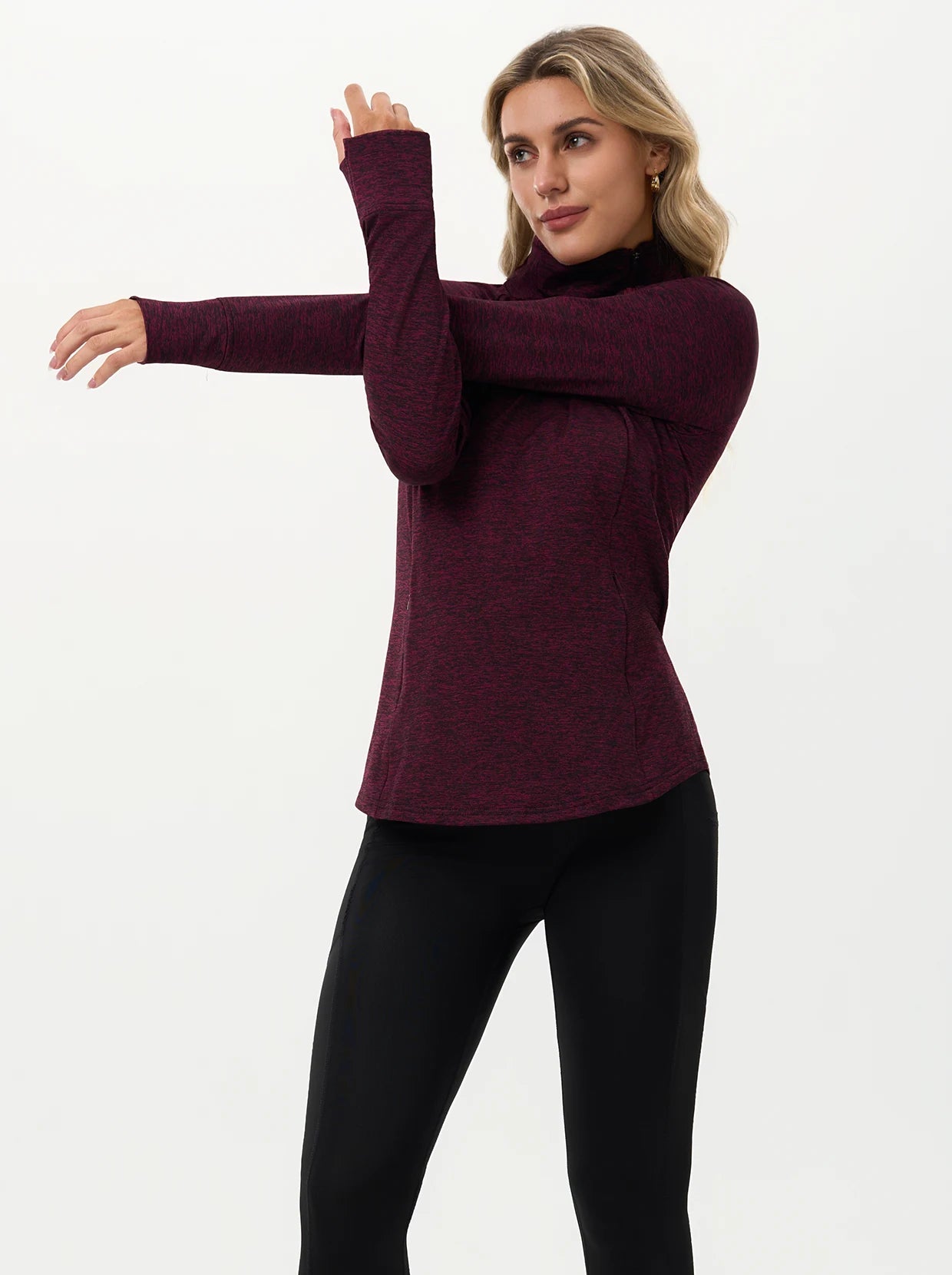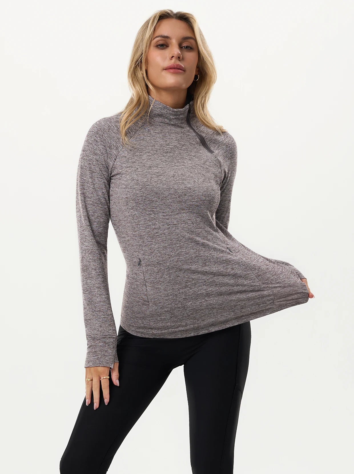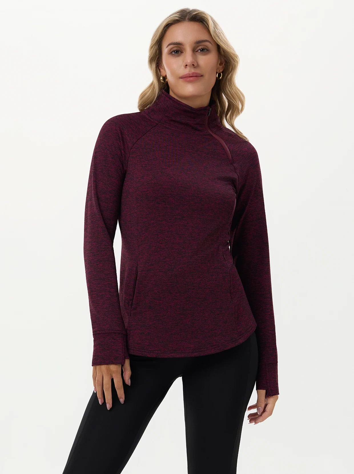 Side-zipper Long-sleeve Thermal Tops with Thumbholes