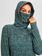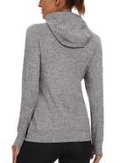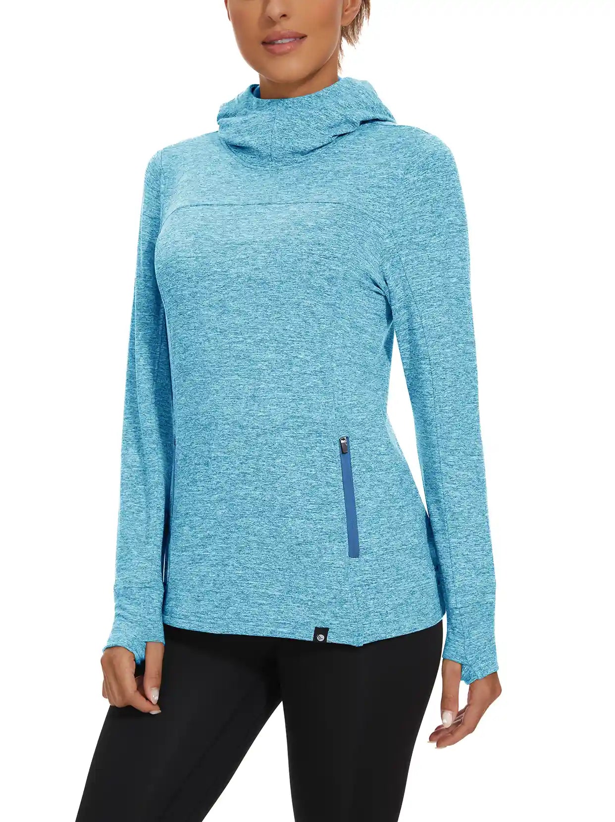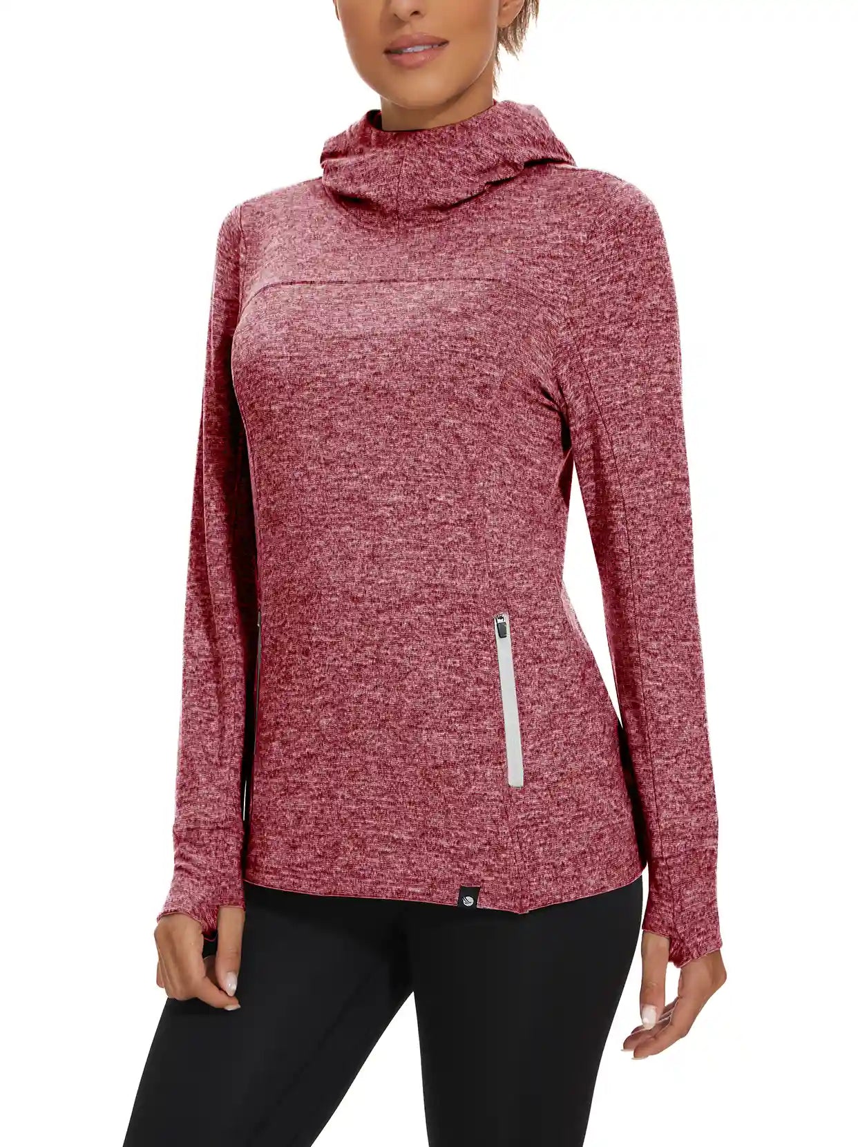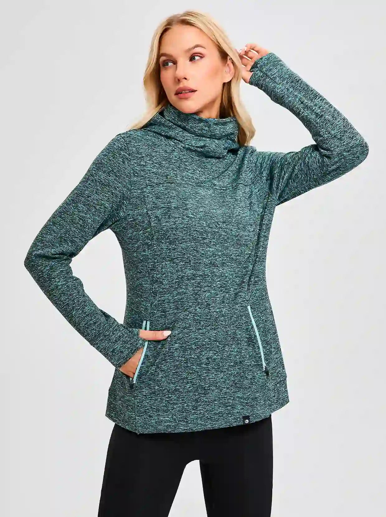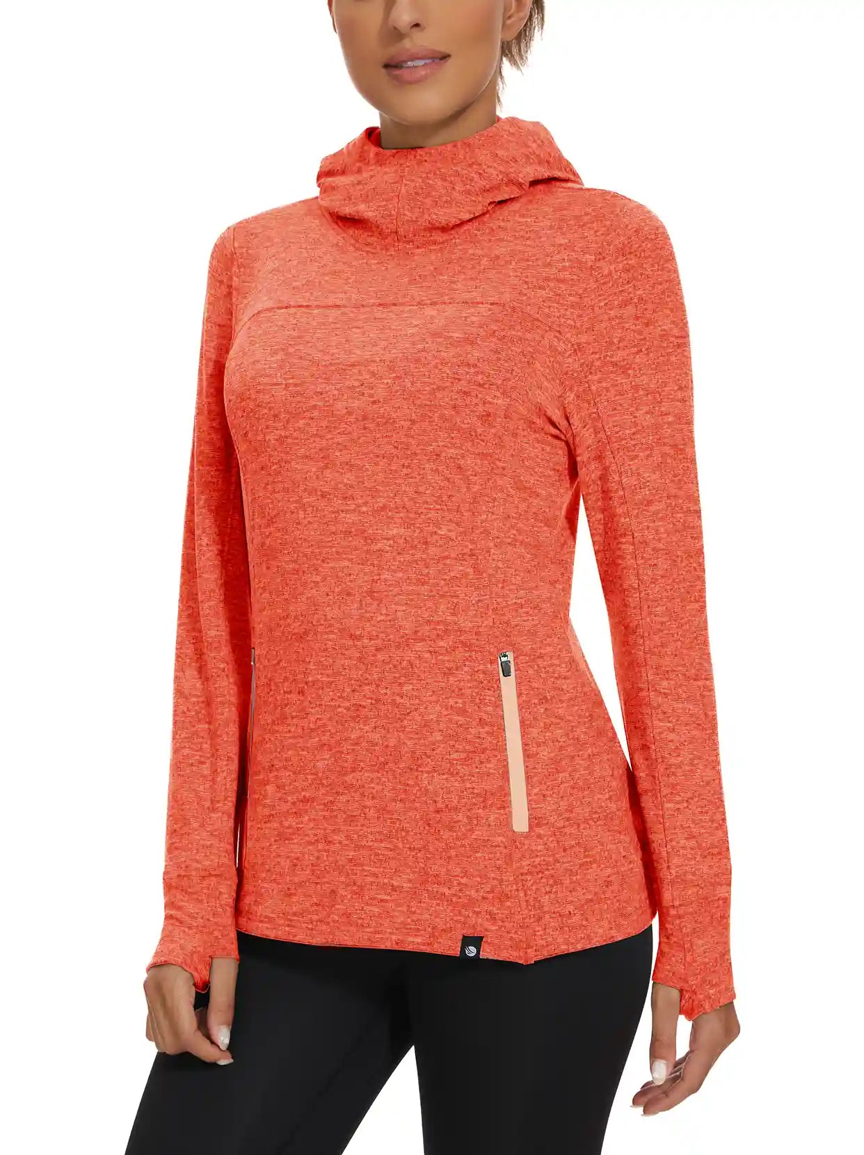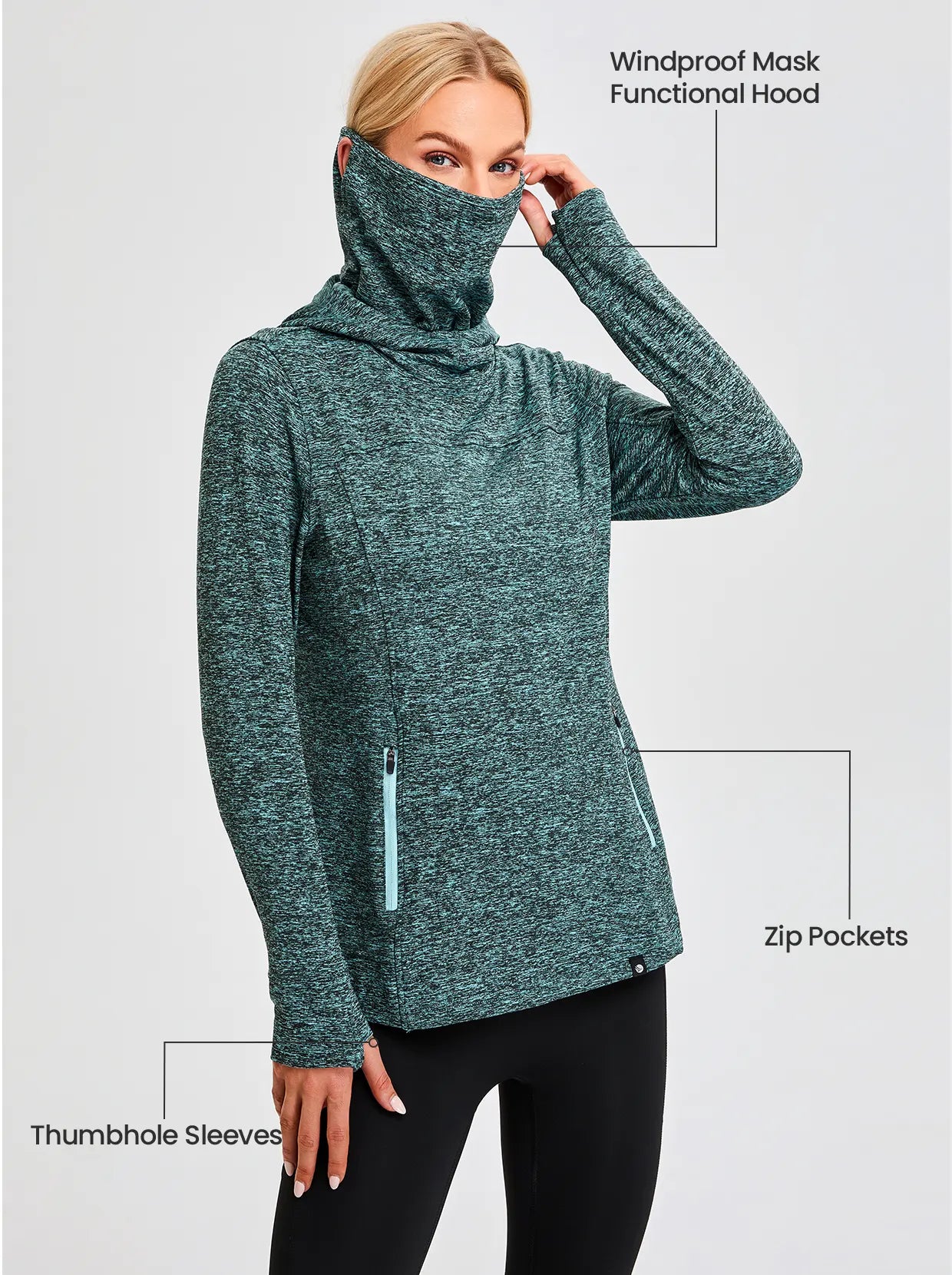 Stay warm and protected with our black thermal hooded top. Featuring a 4-way stretch, and moisture-wicking fabric, it's perfect for skiing or other winter sports. With thumb holes and a zipper kangaroo pocket, you can store the small thing, like your phone. From workouts to winter adventures, this versatile hoodie keeps you cozy.
