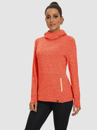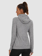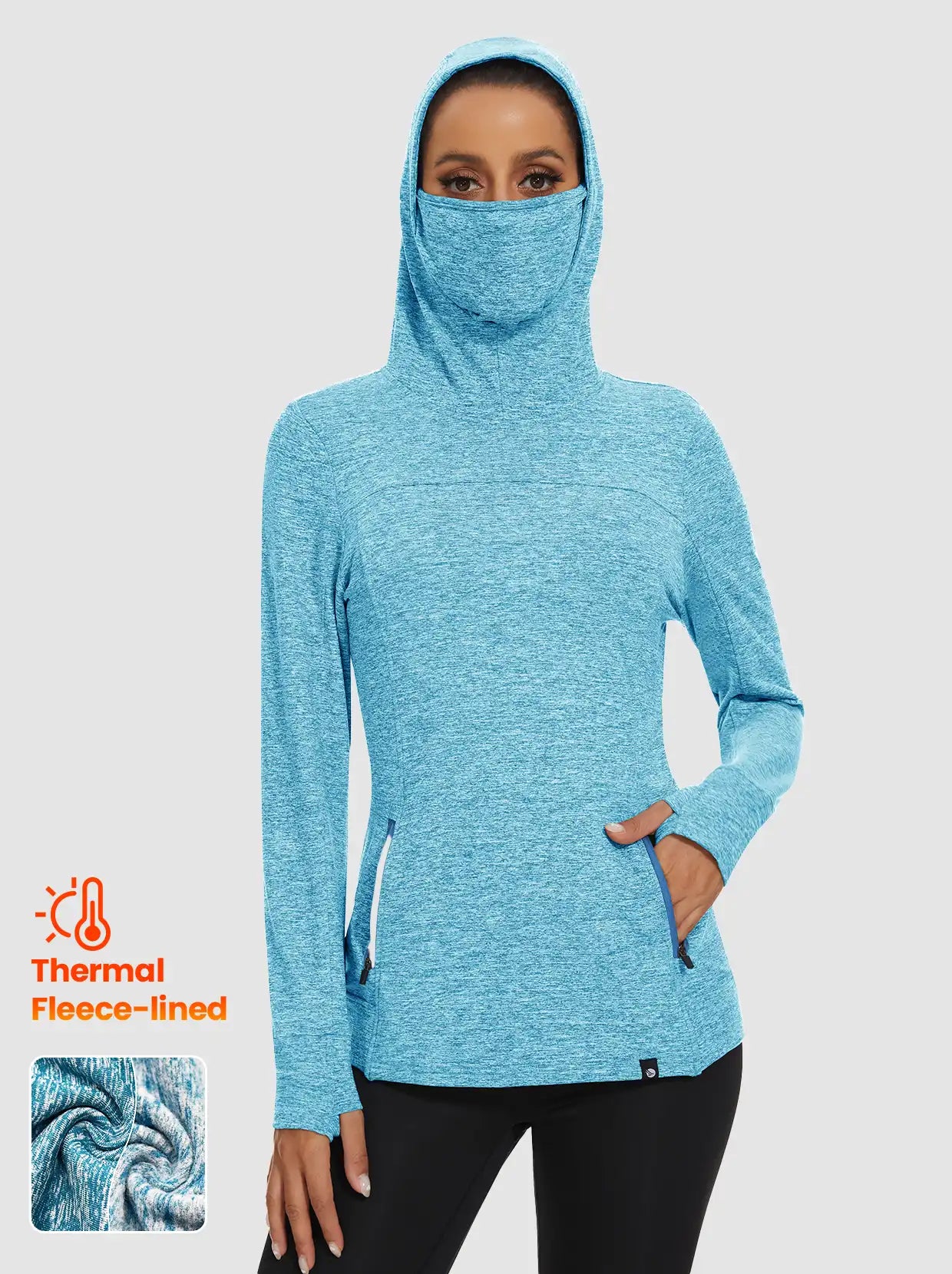 Stay warm and protected with our black thermal hooded top. Featuring a 4-way stretch and moisture-wicking fabric, it's perfect for skiing or other winter sports. With thumb holes and a zipper kangaroo pocket, you can store the small thing, like your phone. From workouts to winter adventures, this versatile hoodie keeps you cozy.