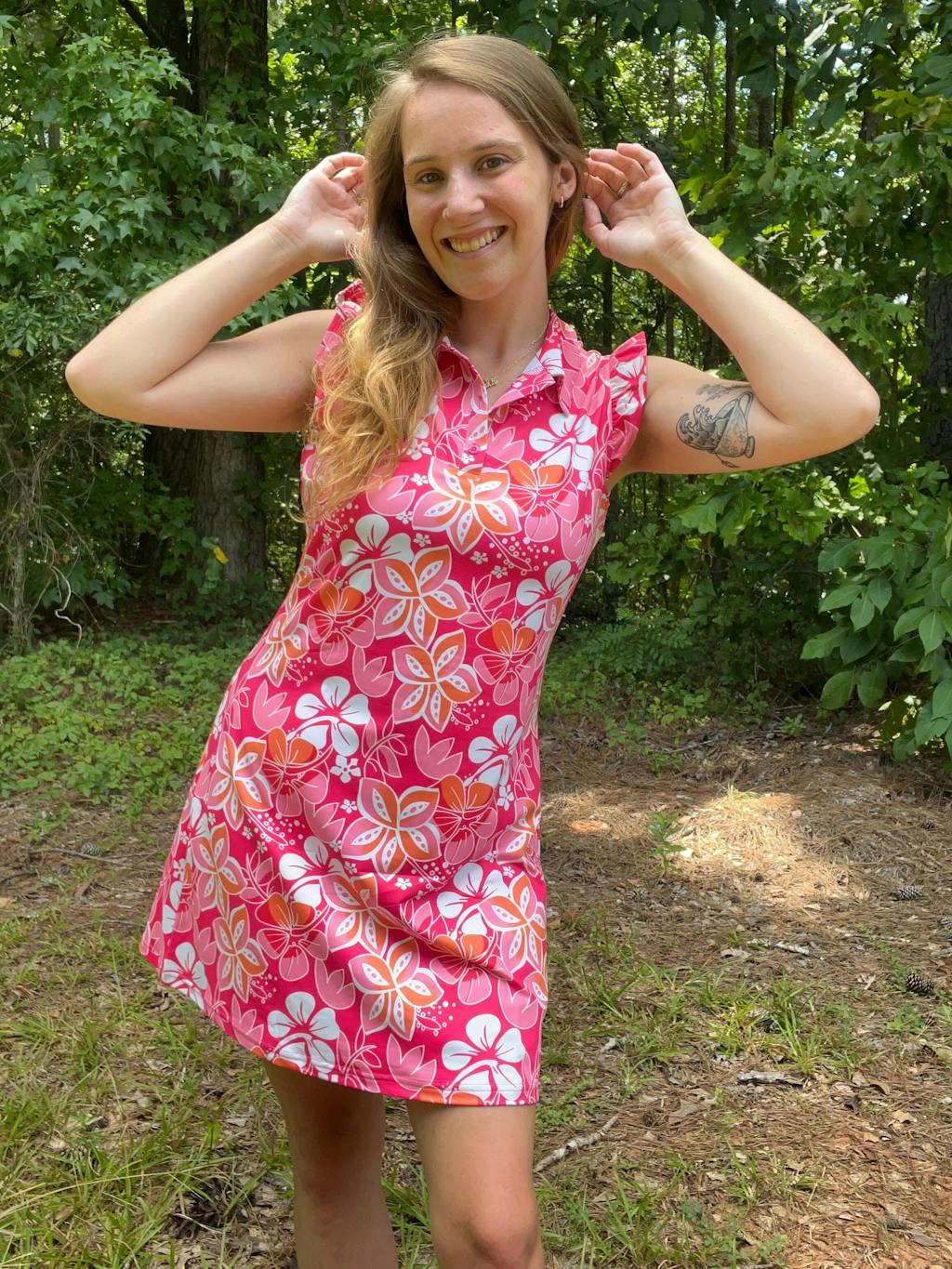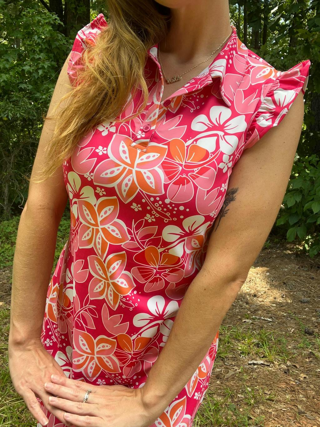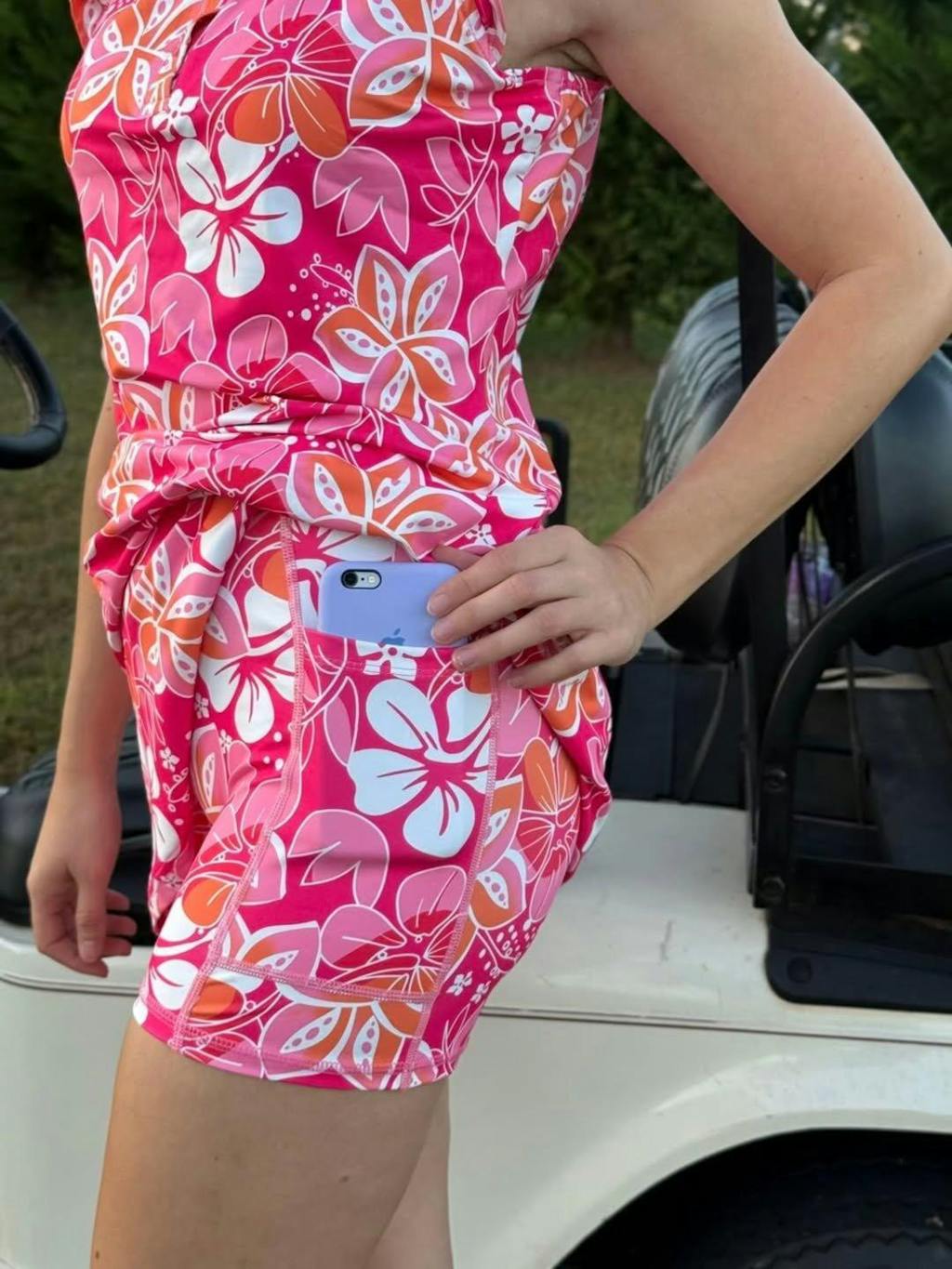 Stay cool, comfortable, and stylish in our red floral ruffle sleeveless sports dress. Made with moisture-wicking, breathable fabric, this women's golf dress is perfect for any outdoor activity. Plus, built-in shorts and pockets make it easy to carry your essentials on the go. From golfing to office wear, this red golf dress has you covered. Add a touch of elegance to your wardrobe today.