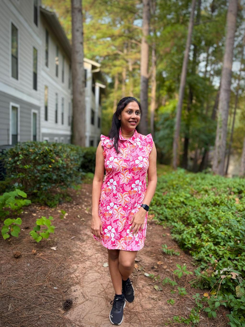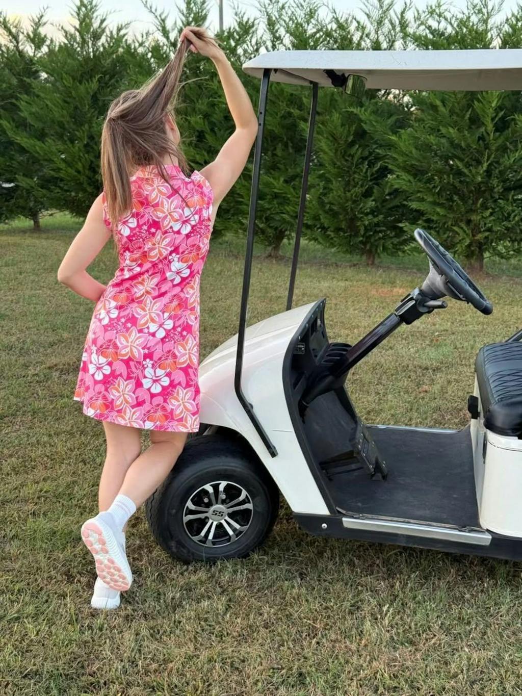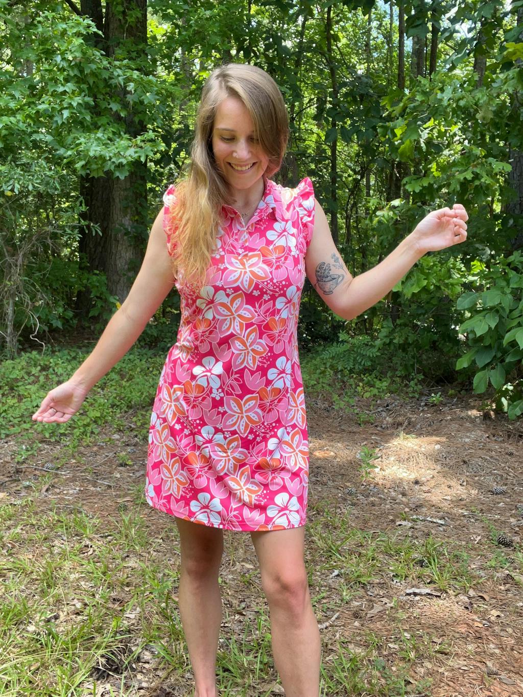 Stay cool, comfortable, and stylish in our red floral ruffle sleeveless sports dress. Made with moisture-wicking, breathable fabric, this women's golf dress is perfect for any outdoor activity. Plus, built-in shorts and pockets make it easy to carry your essentials on the go. From golfing to office wear, this red golf dress has you covered. Add a touch of elegance to your wardrobe today.