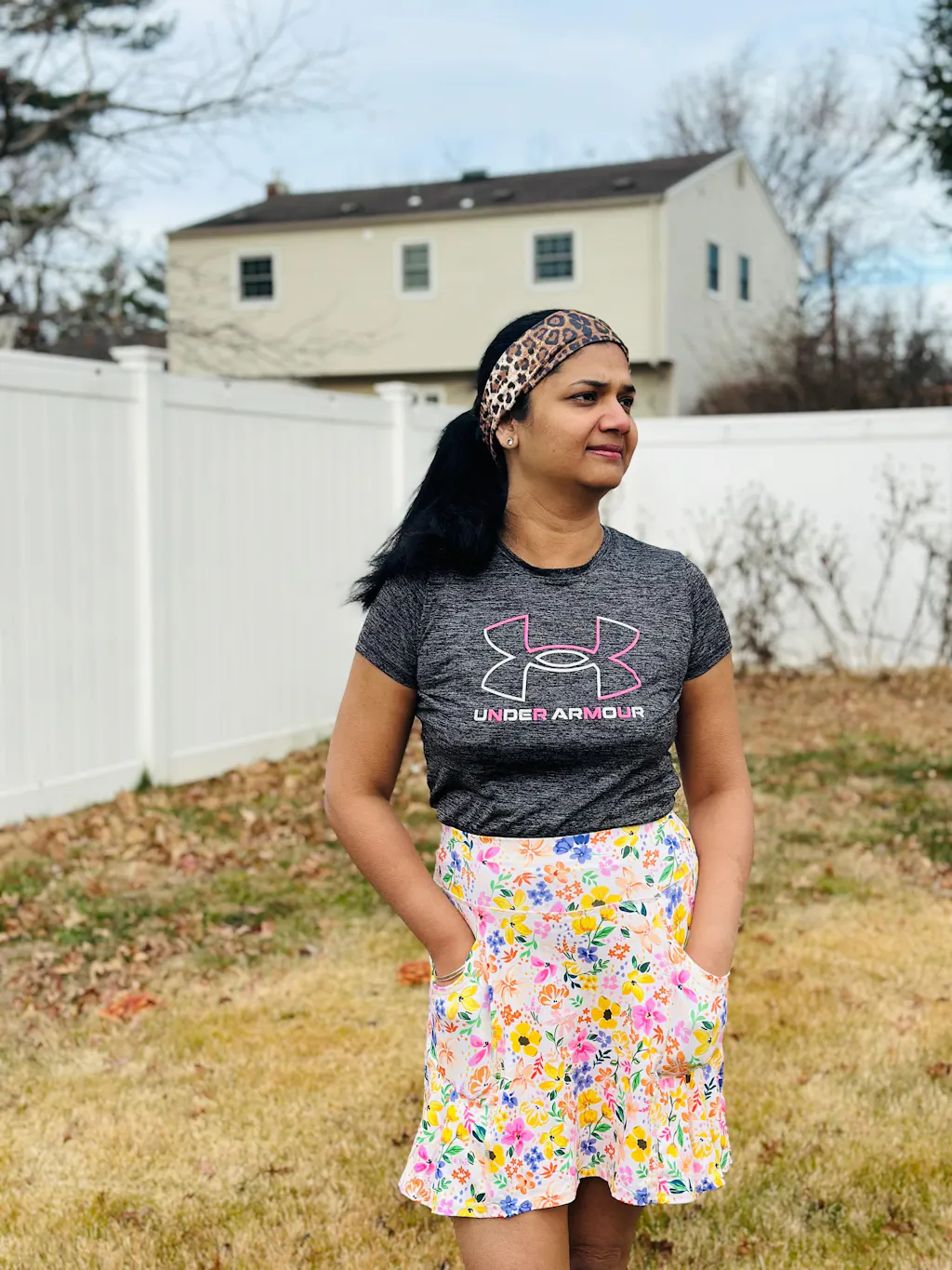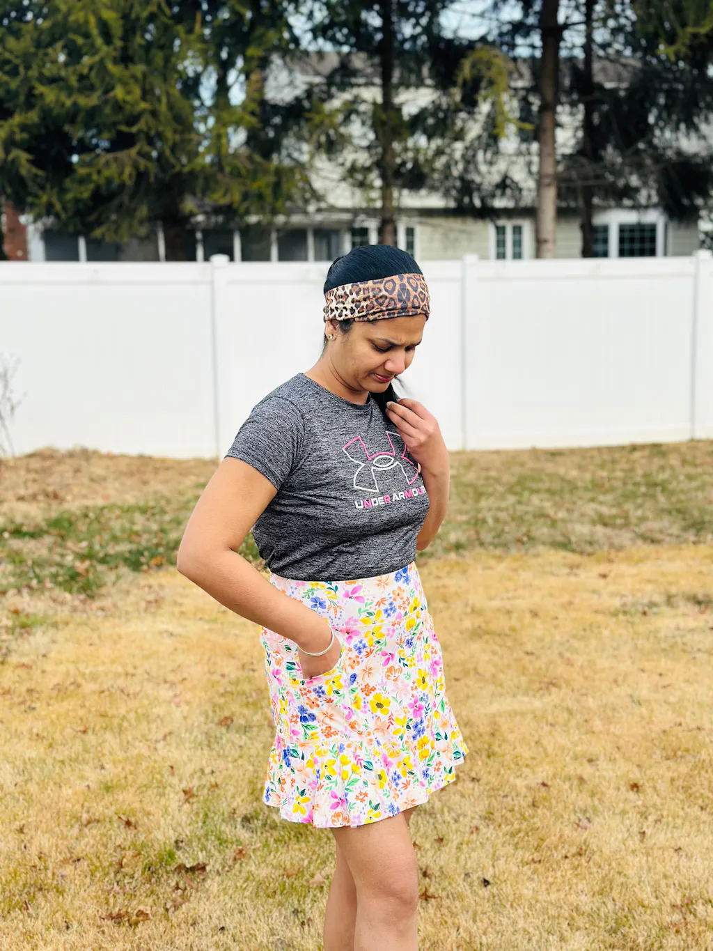 17" Yellow Floral Pleated Skorts with Shorts and Pockets