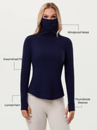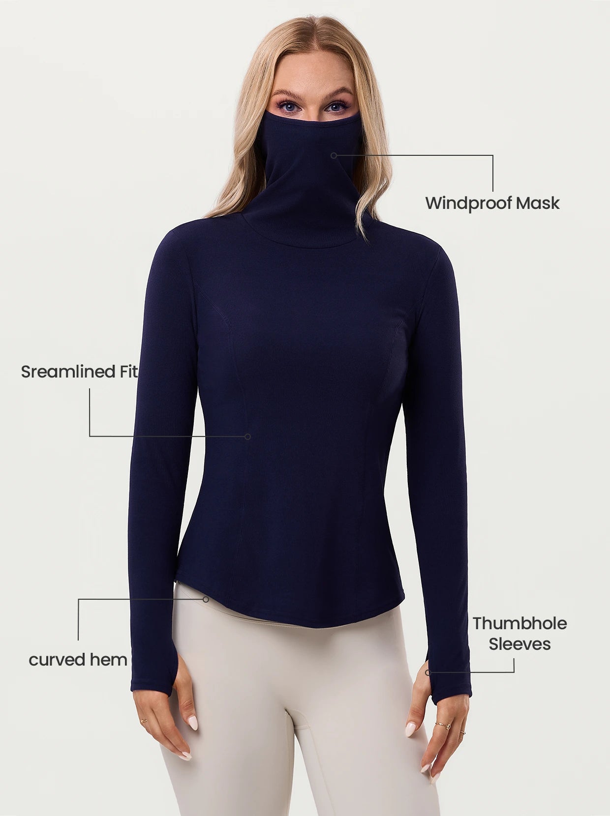 Cowl-Neck Long-sleeve Thermal Top with Windproof Mask