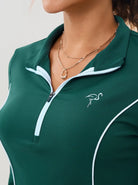 Dark Green Breathable Half-Mesh Long-sleeve Polo Shirt (SHIP IN 2 DAYS)