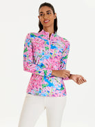 Pink Floral Quarter-zip Long-sleeve Shirt for Women