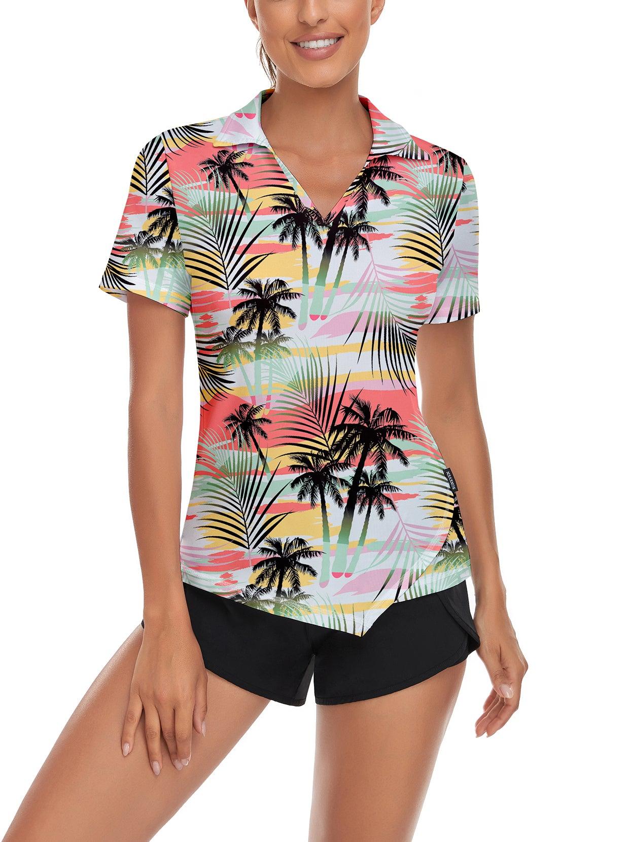 Shop our Ladies' Short Sleeve Golf Polo - Colorful Background Coconut Trees Short Sleeve Golf Shirt Moisture Wicking Athletic Golf Polo Shirts Tennis Shirts Dry Fit.