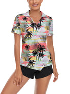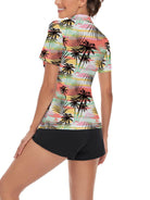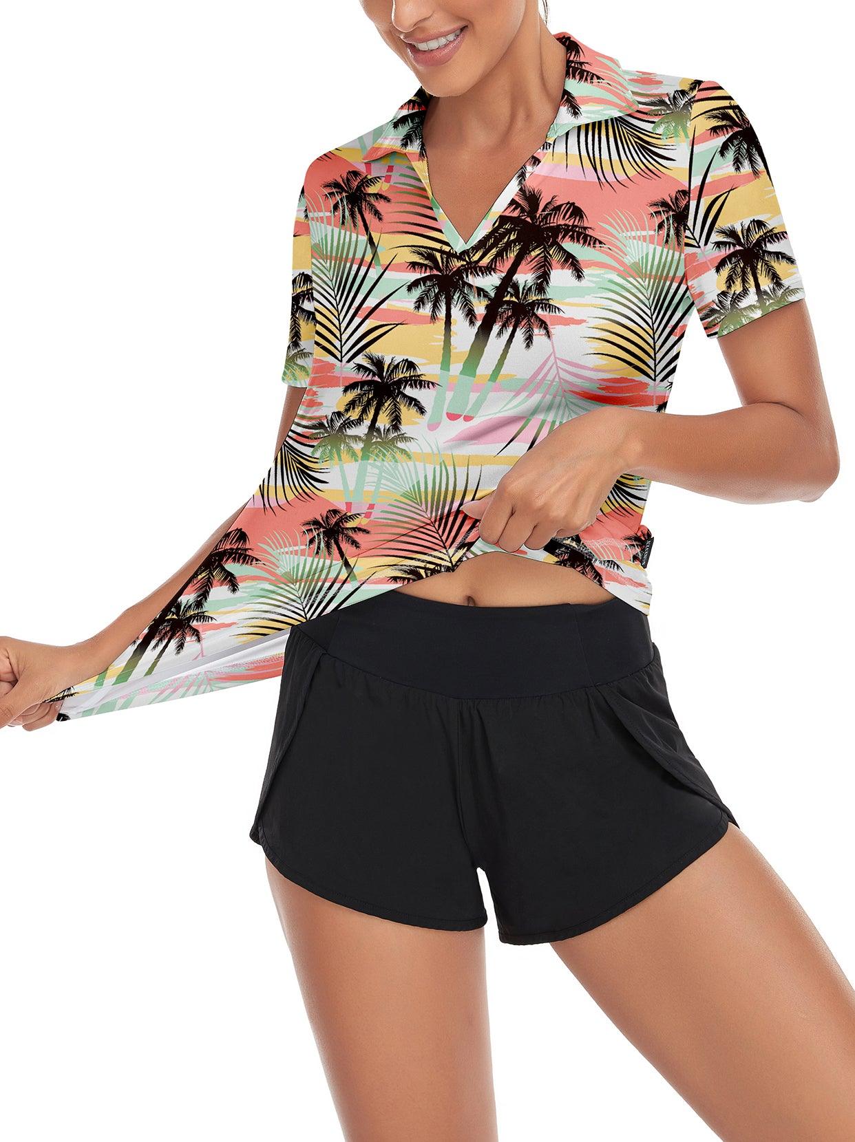 Colorful Background Coconut Trees Short Sleeve Golf Shirt for Women