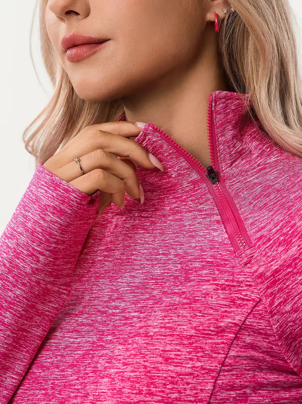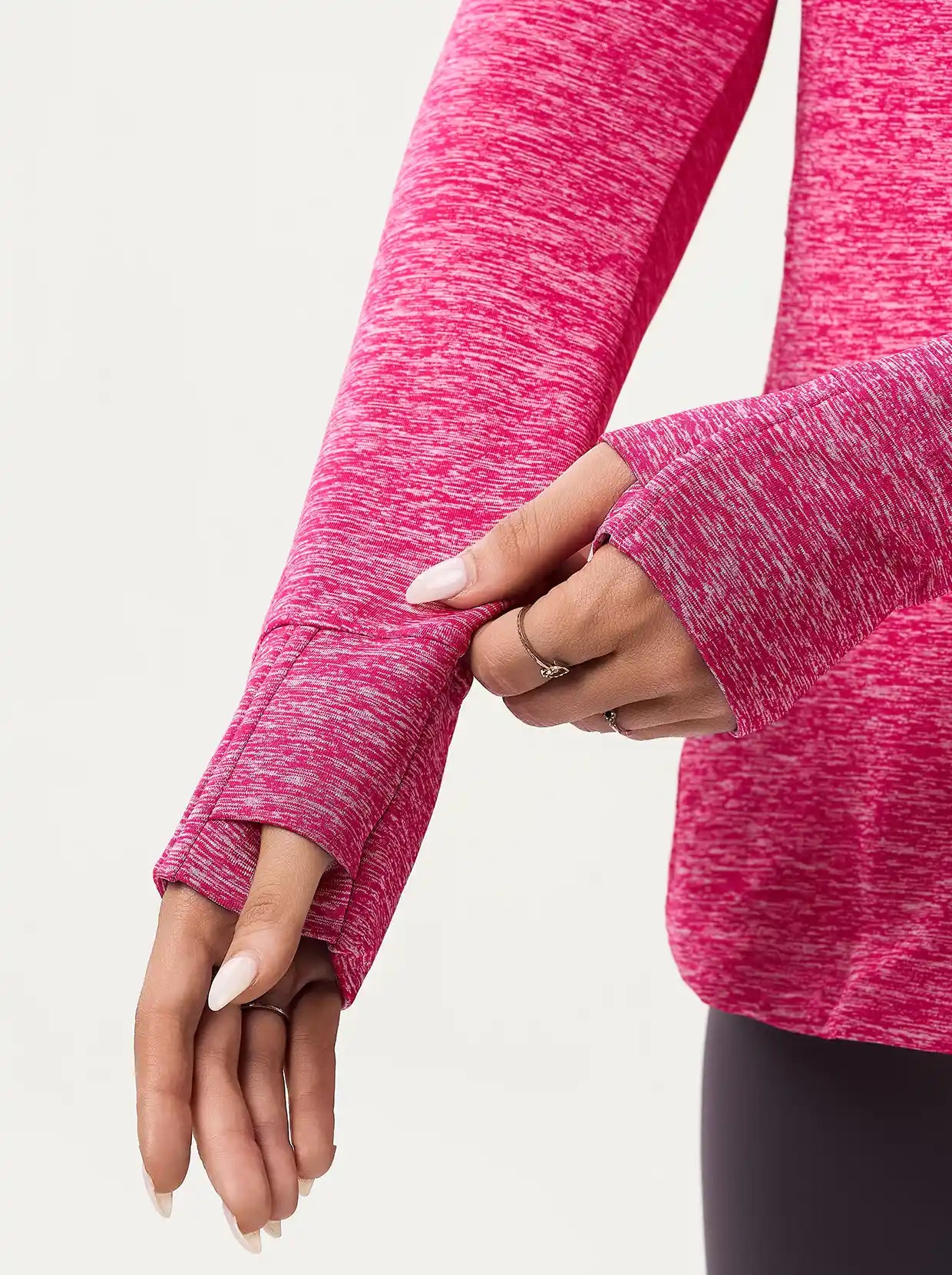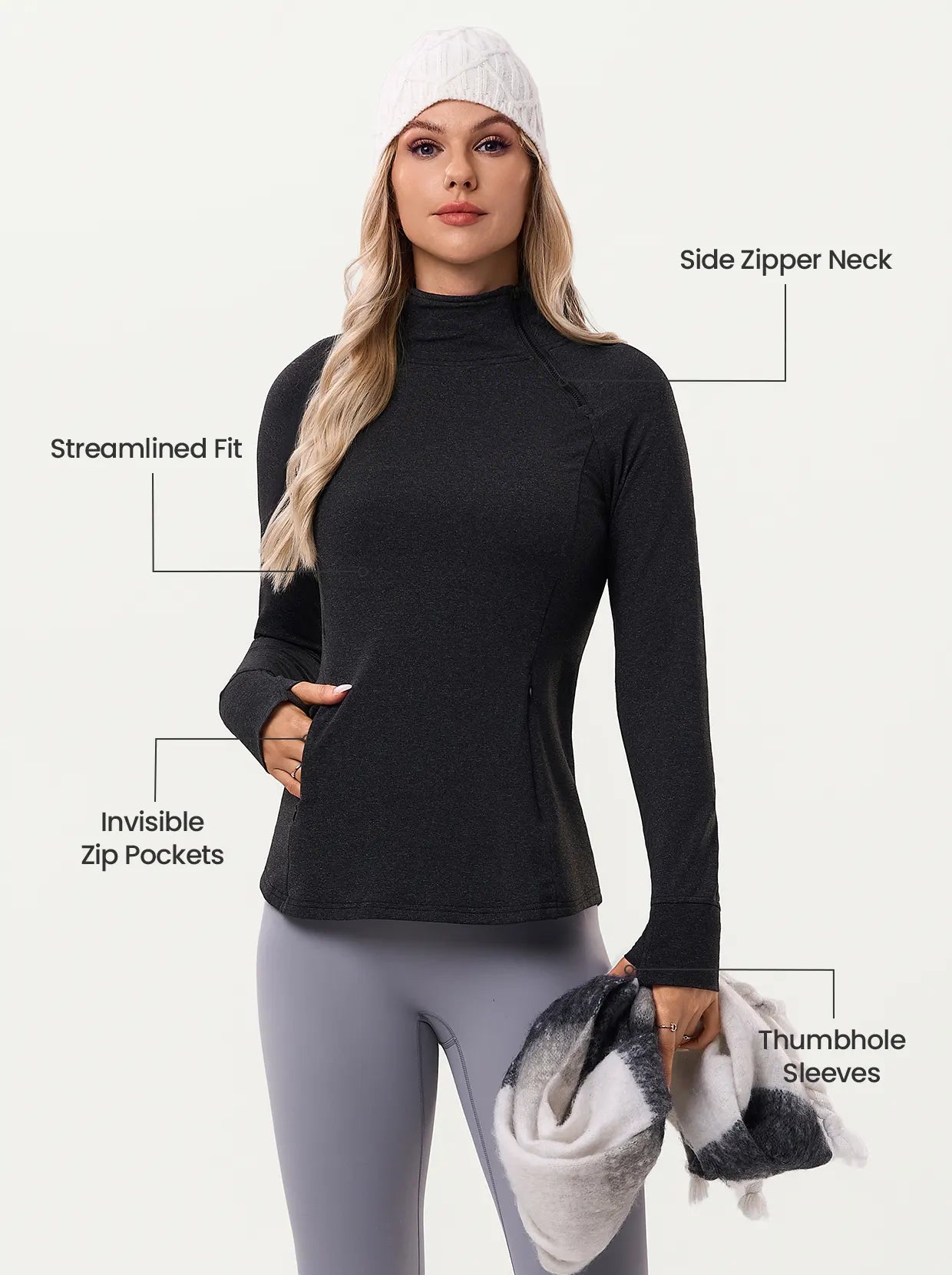Embrace warmth and style with the Side-zip Long-sleeve Thermal Top. This practical top features a soft thermal fabric that stretches for a comfortable fit, keeping you cozy without restricting movement. The stand collar with a sporty side zipper offers easy ventilation, while thumbholes keep your sleeves securely in place.