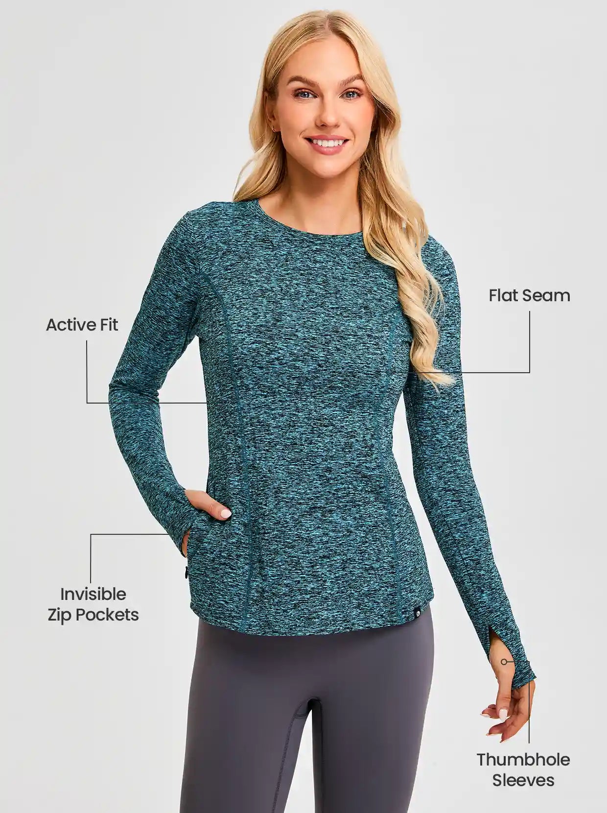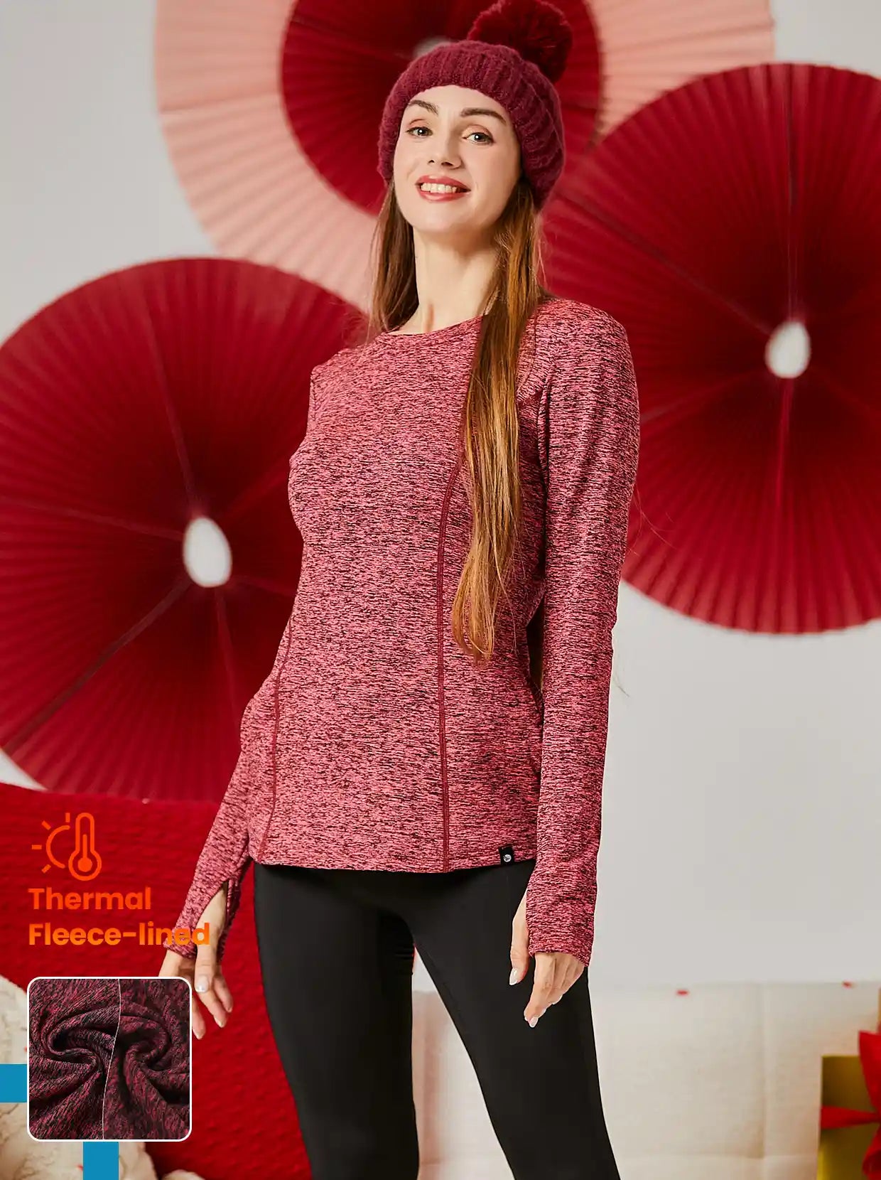 Thermal Pullover Long-sleeve Top with Two Hidden Pockets