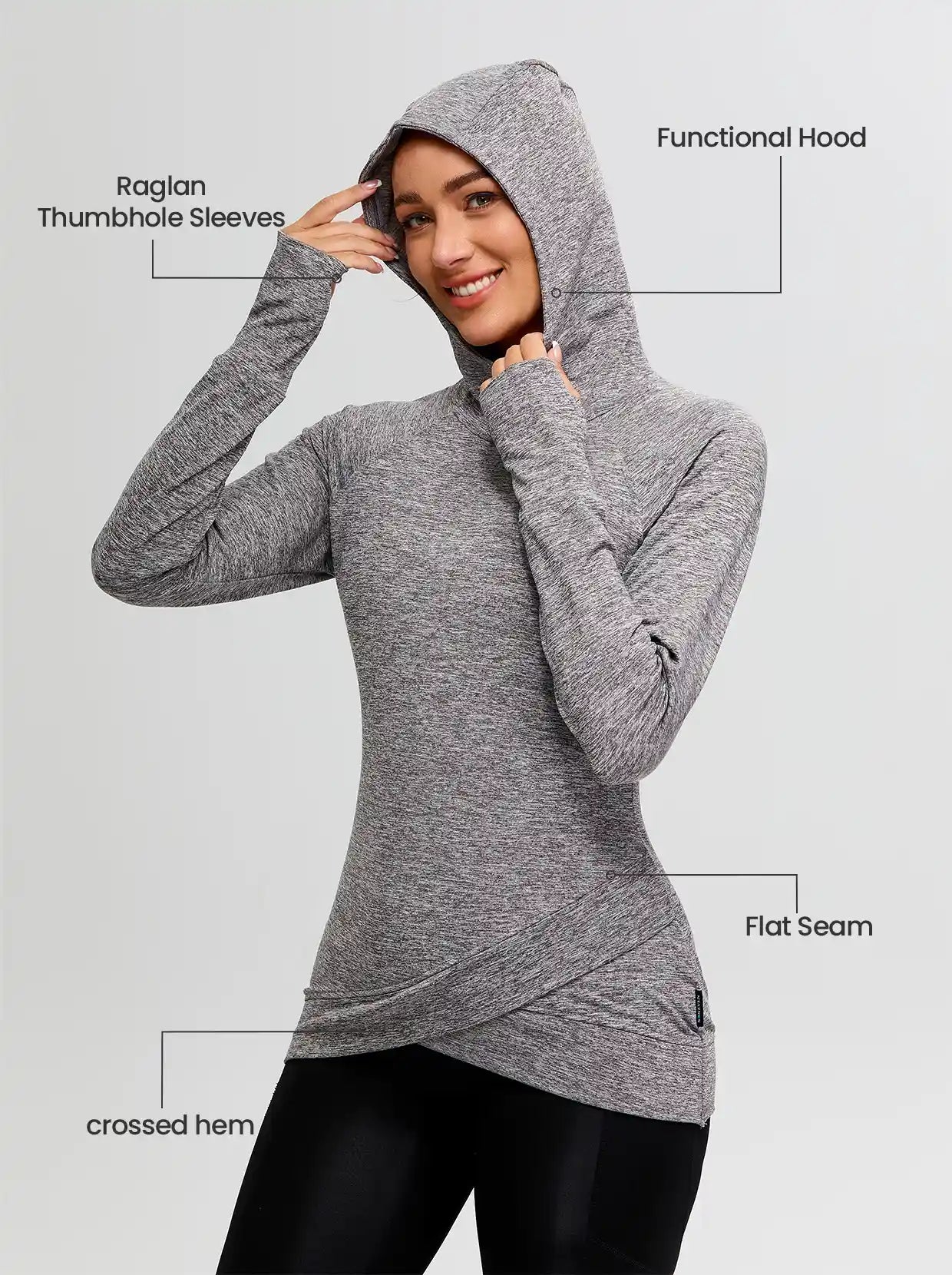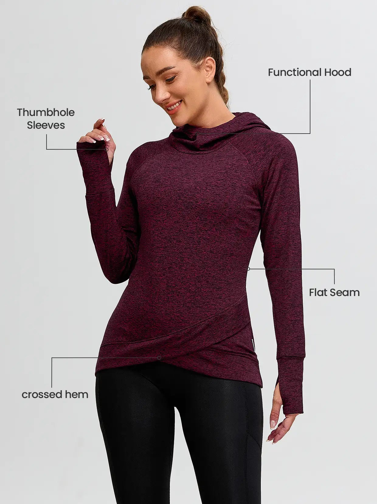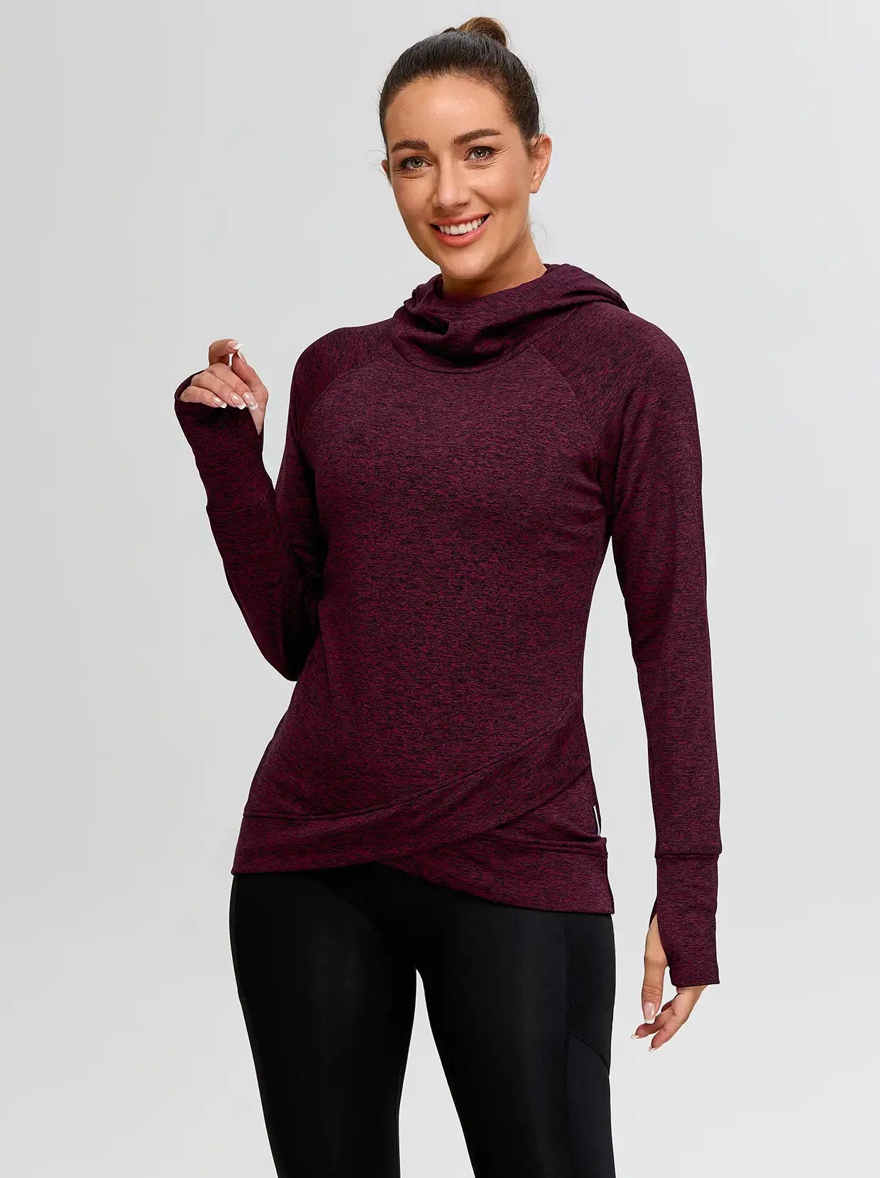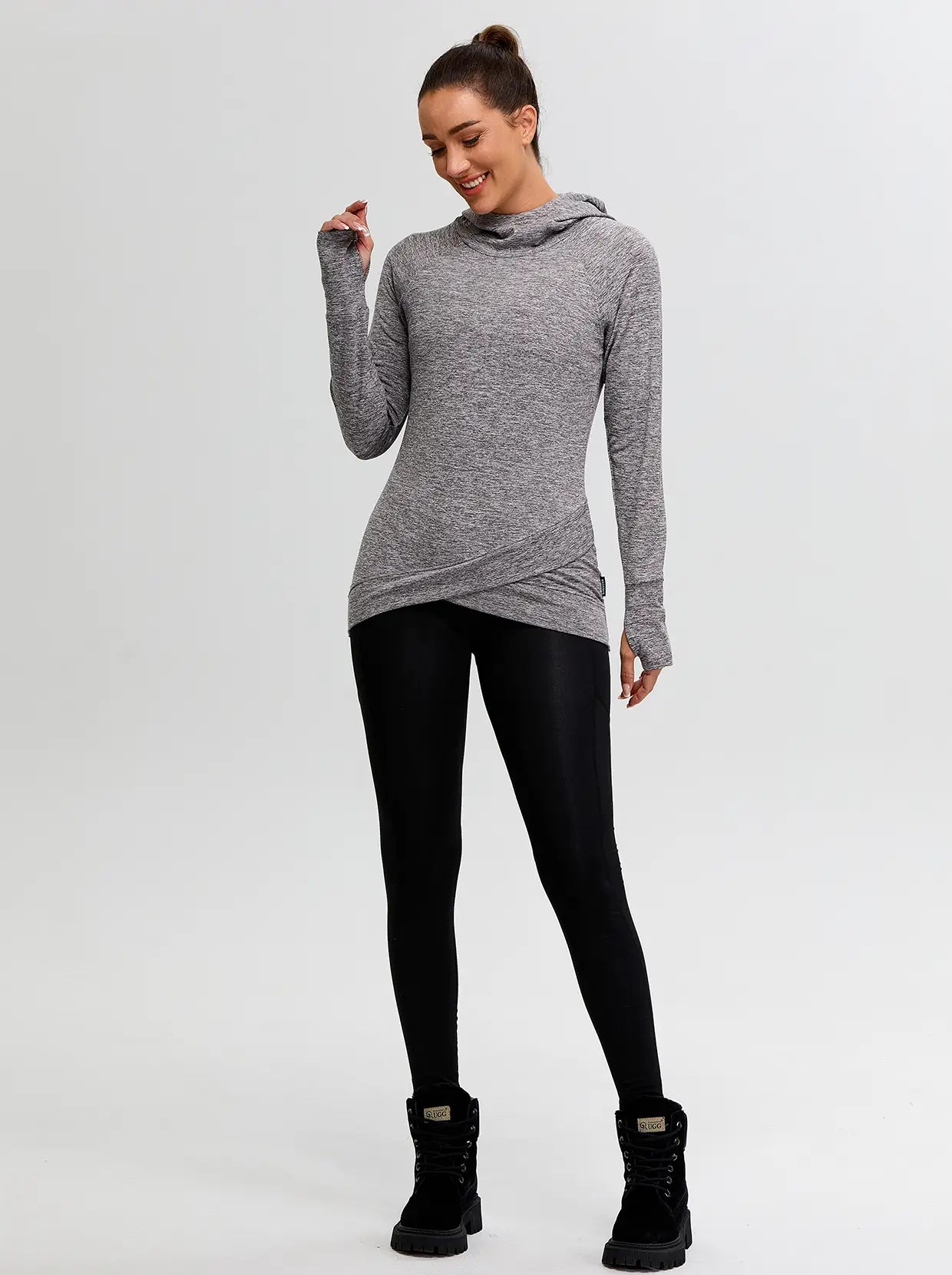Hoodie Crossed Hem Long-sleeve Thermal Tops
