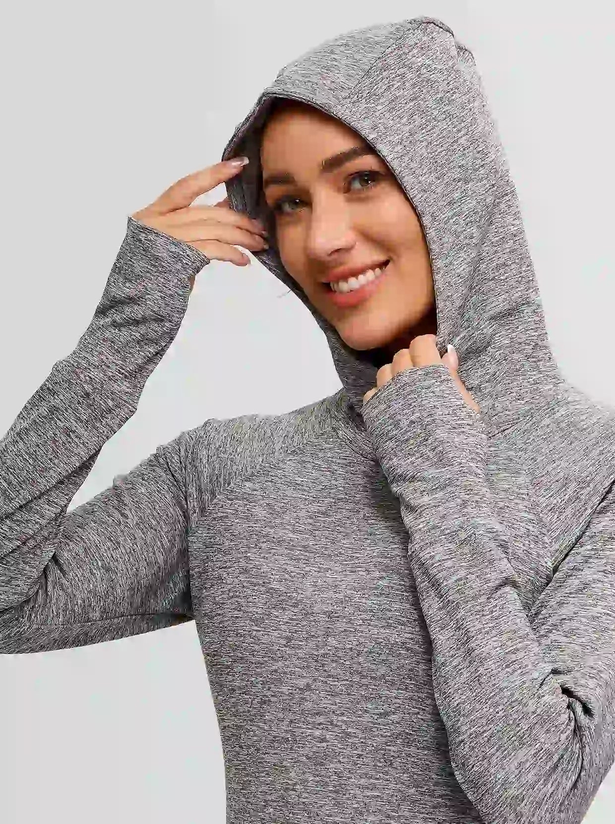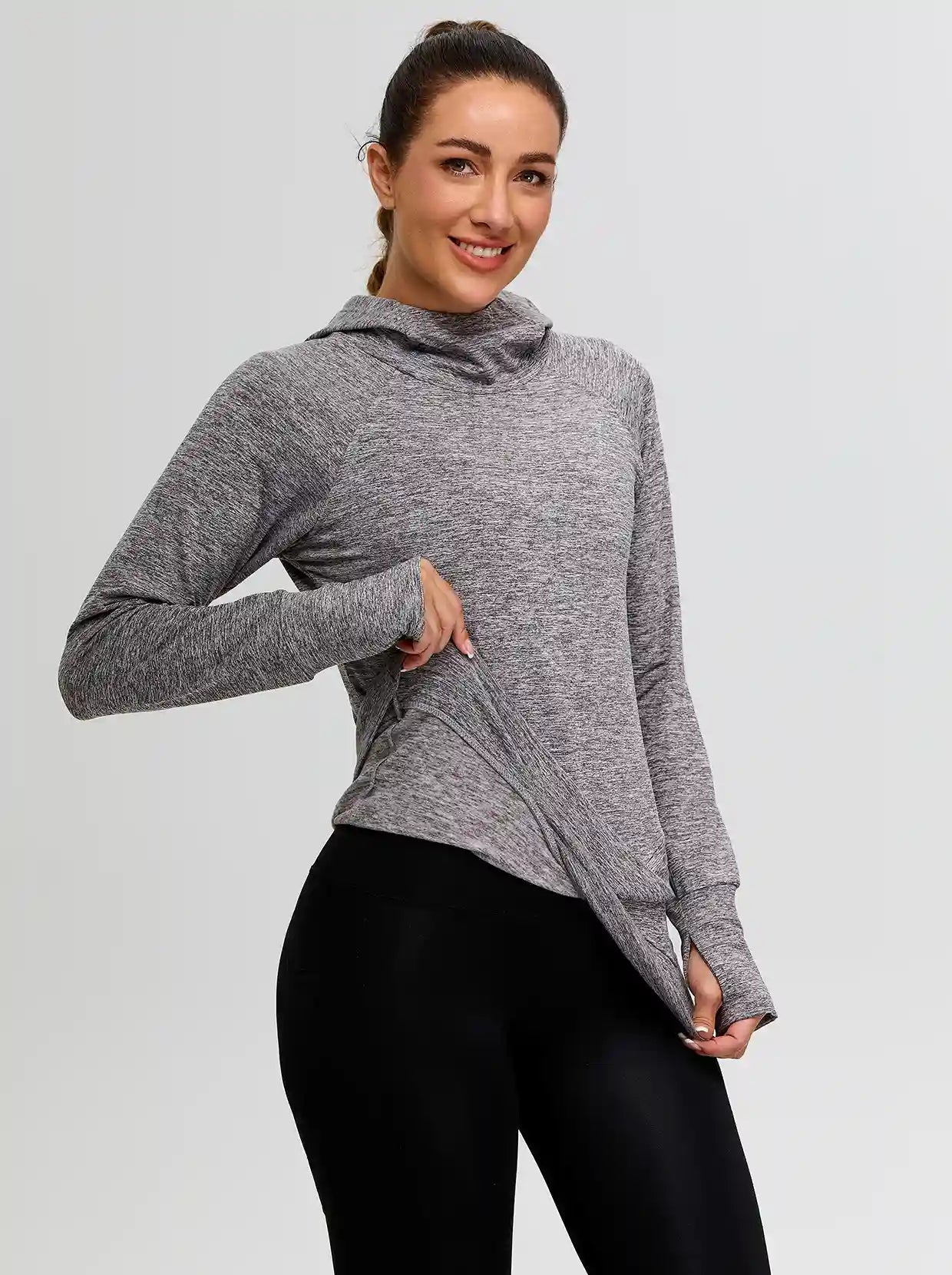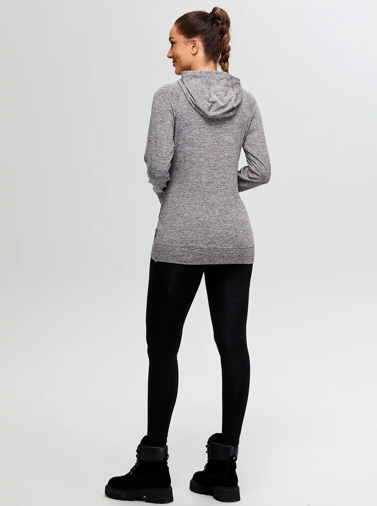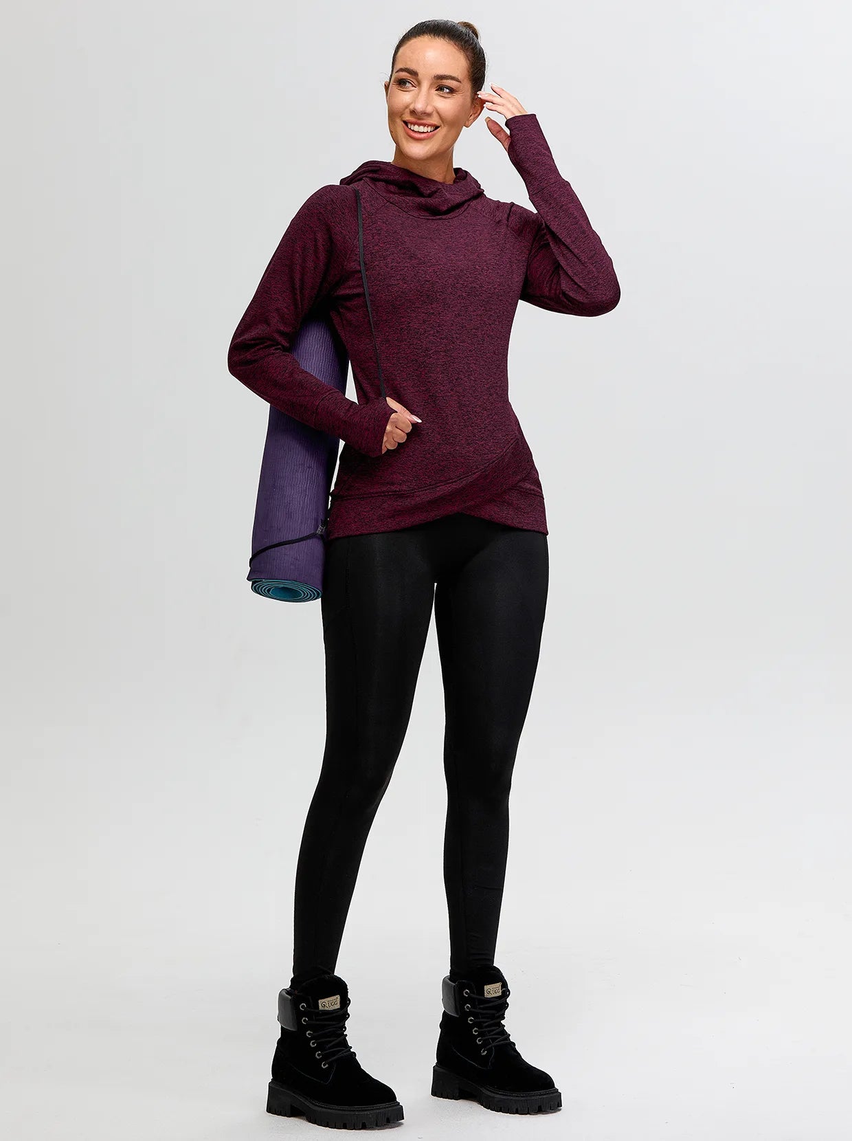 Hoodie Crossed Hem Long-sleeve Thermal Tops