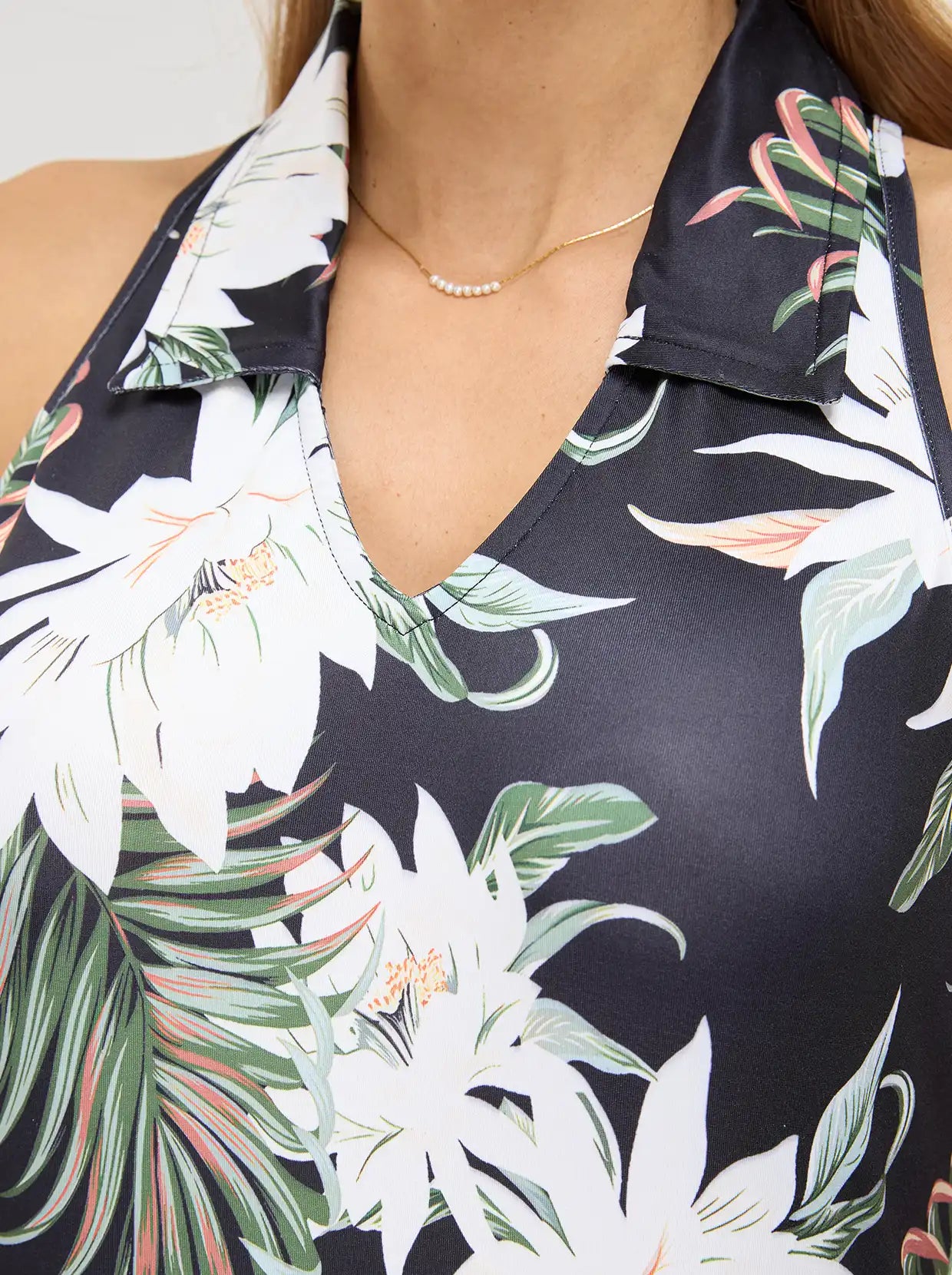 Hawaii Style Floral V-neck Racerback Sleeveless Polo Shirt