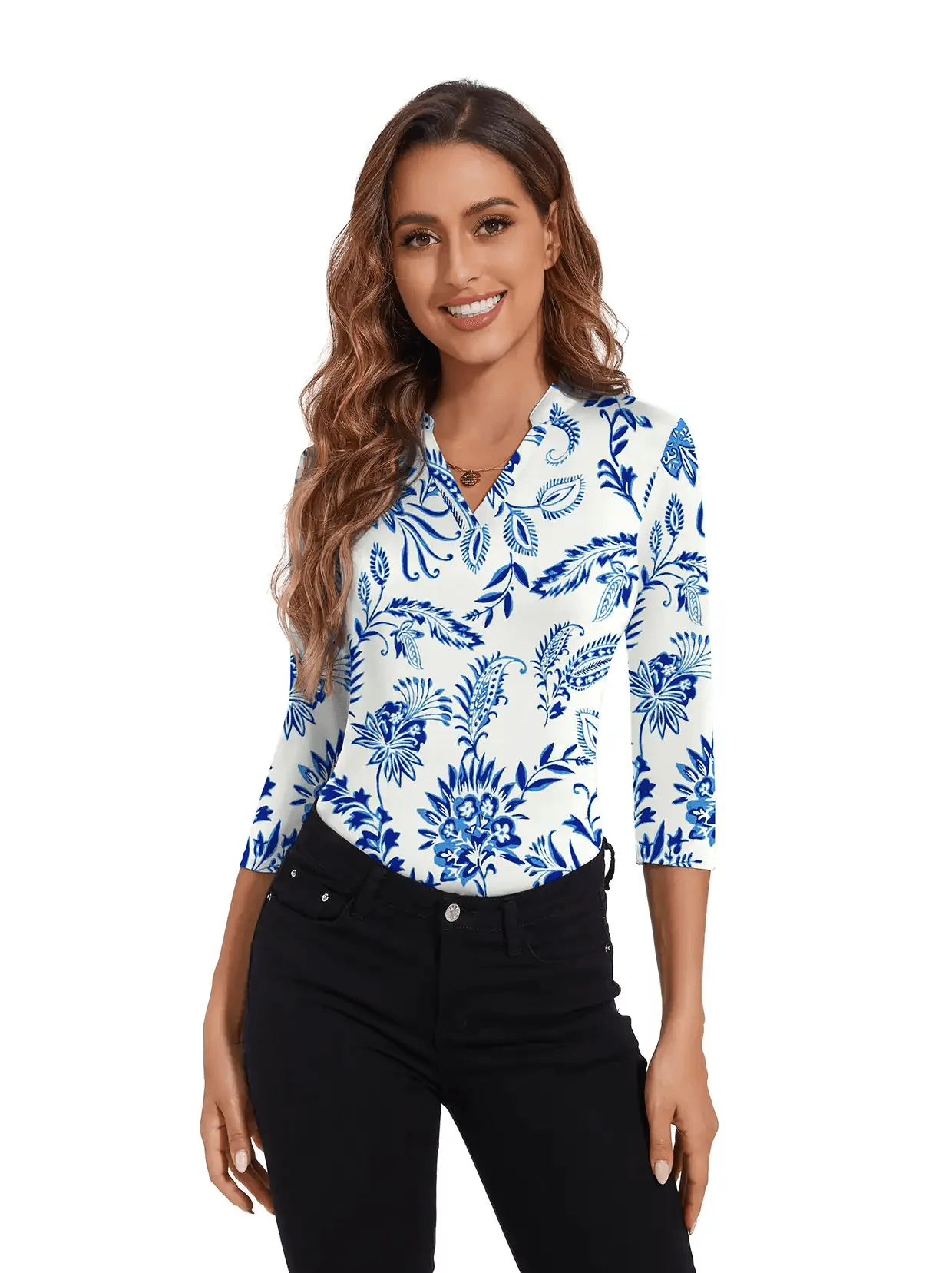 Discover the allure of Soneven's stylish 3/4 length sleeve golf shirts for women. Offering comfortable coverage for ample sun protection, these shirts are designed to elevate your golf game. With elegant and feminine designs, along with trendy prints, they add a playful touch to your golf outfits. V-neck button-down shirts, also perfect for daily wear, are easy to pair with straight long skirts and jeans.