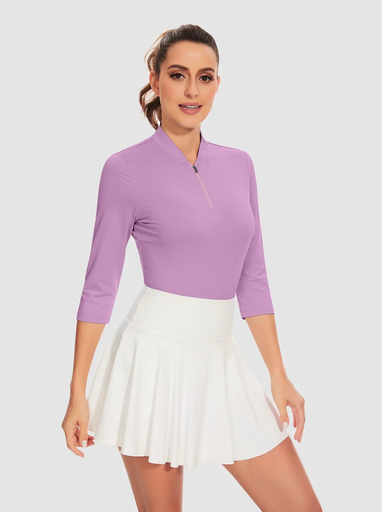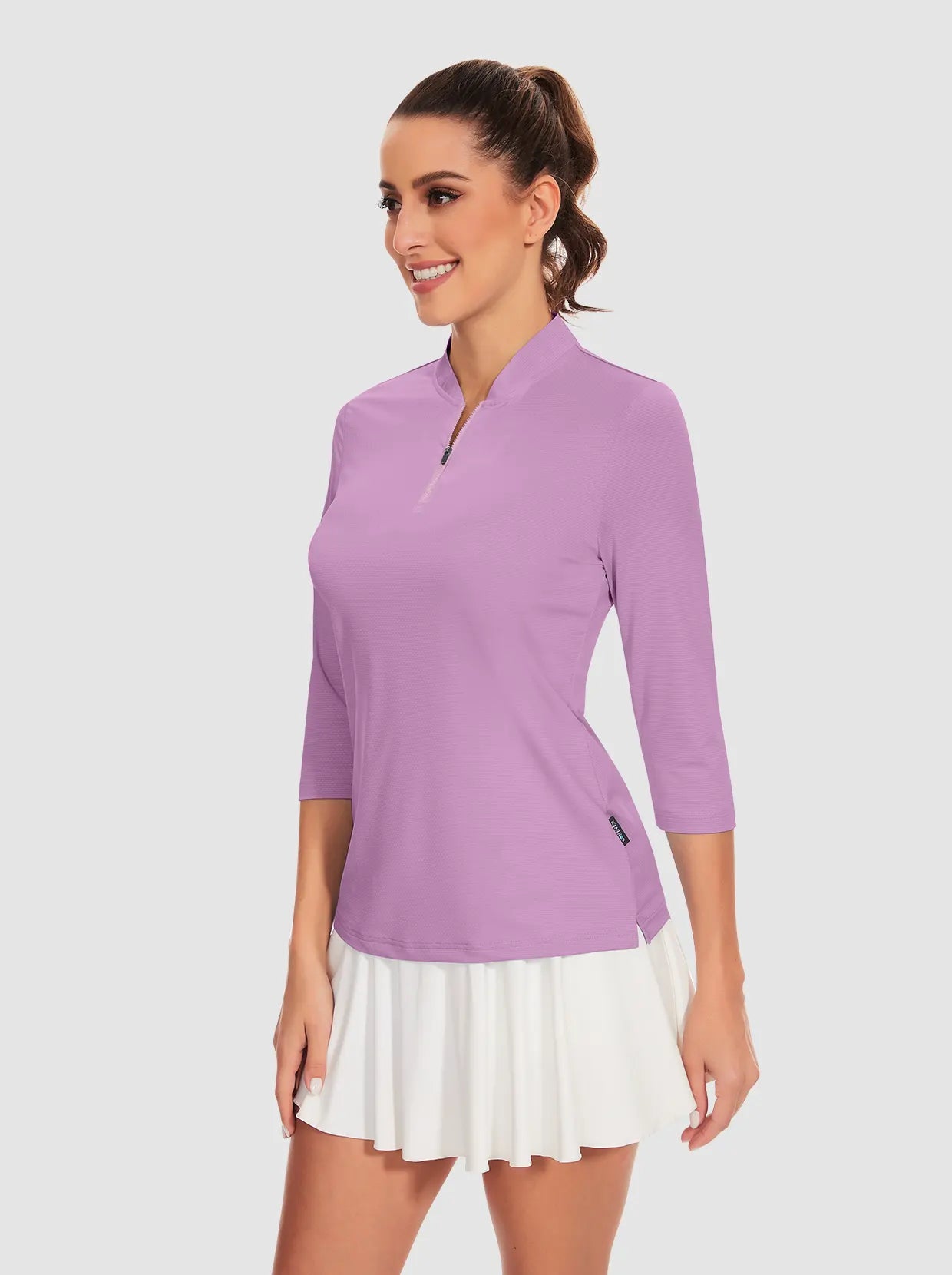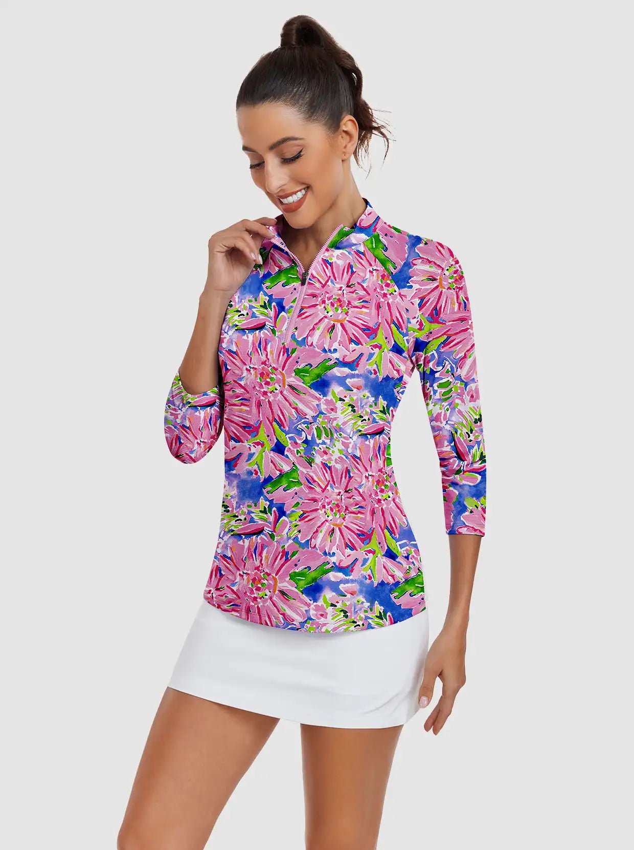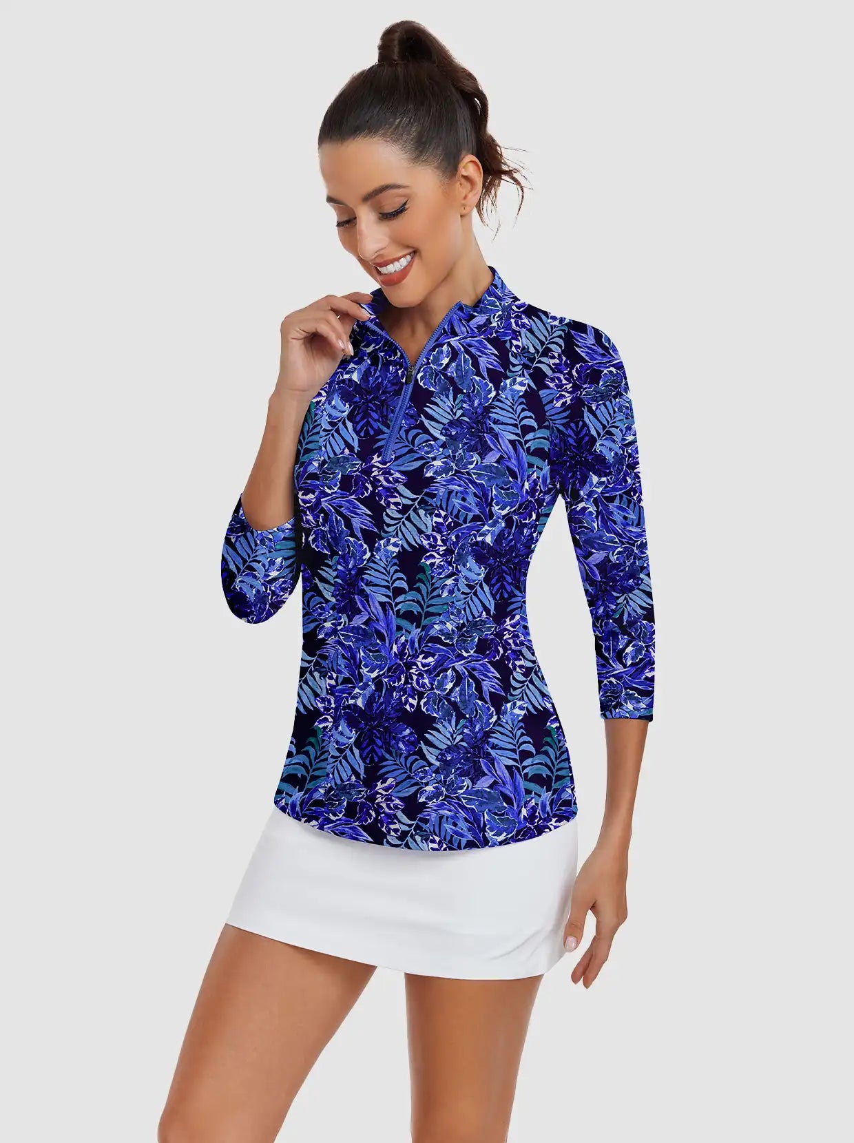 Discover the allure of Soneven's stylish 3/4 length sleeve golf shirts for women. Offering comfortable coverage for ample sun protection, these shirts are designed to elevate your golf game. With elegant and feminine designs, along with trendy prints, they add a playful touch to your golf outfits. V-neck button-down shirts, also perfect for daily wear, are easy to pair with straight long skirts and jeans.