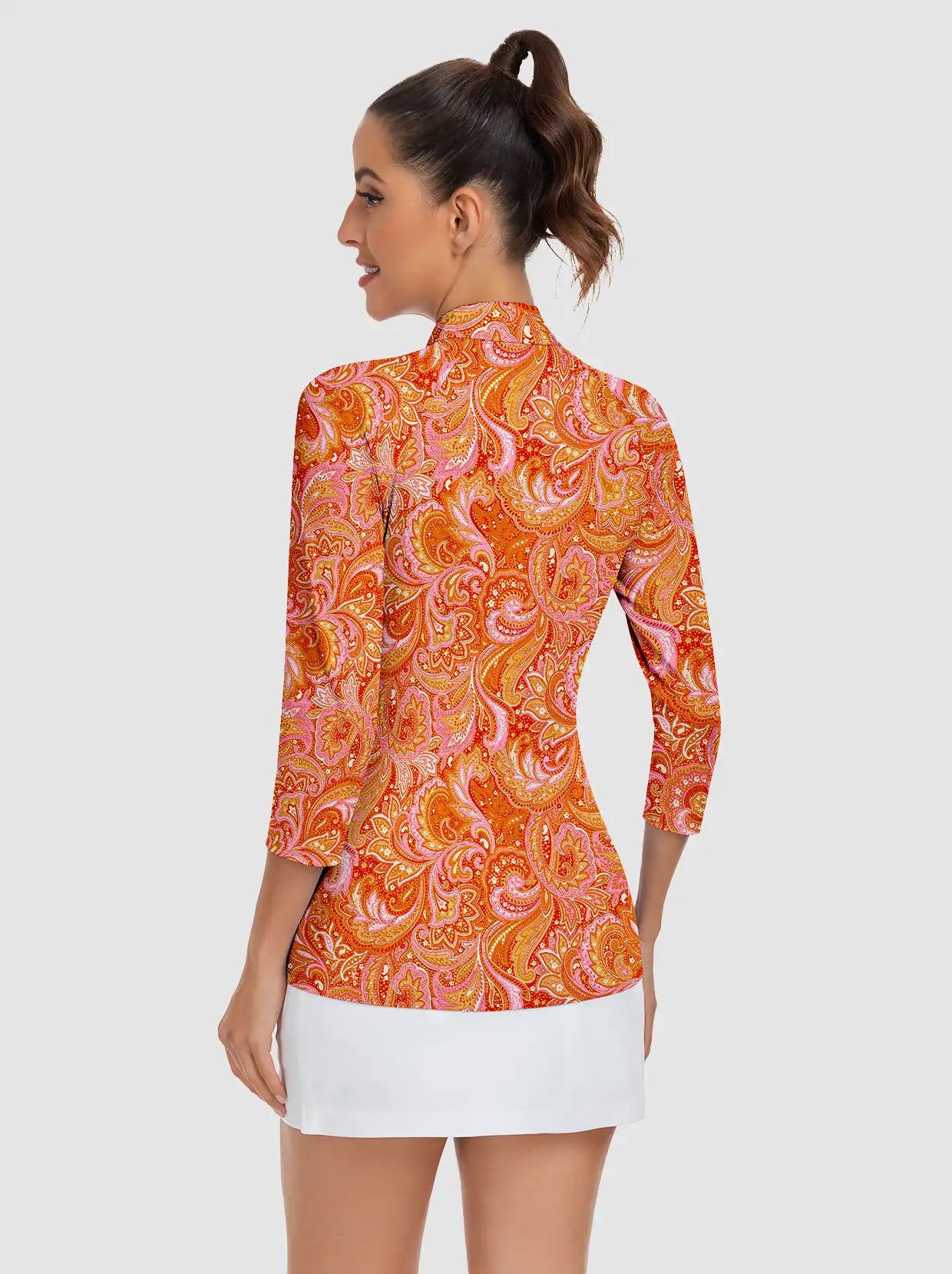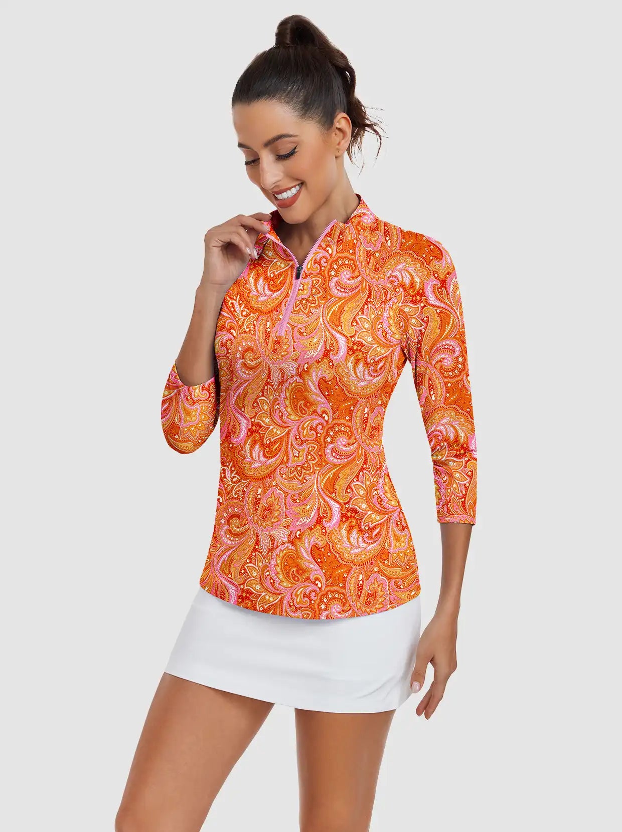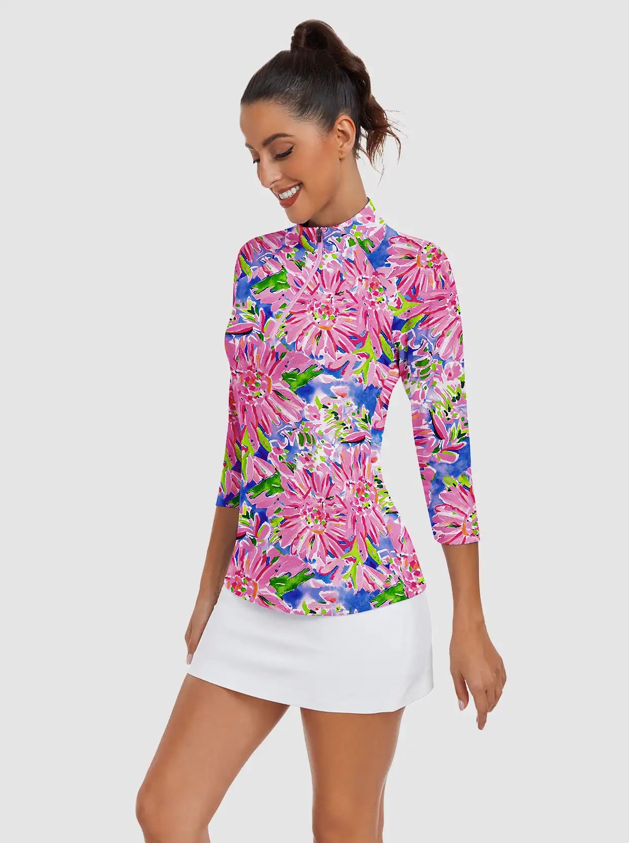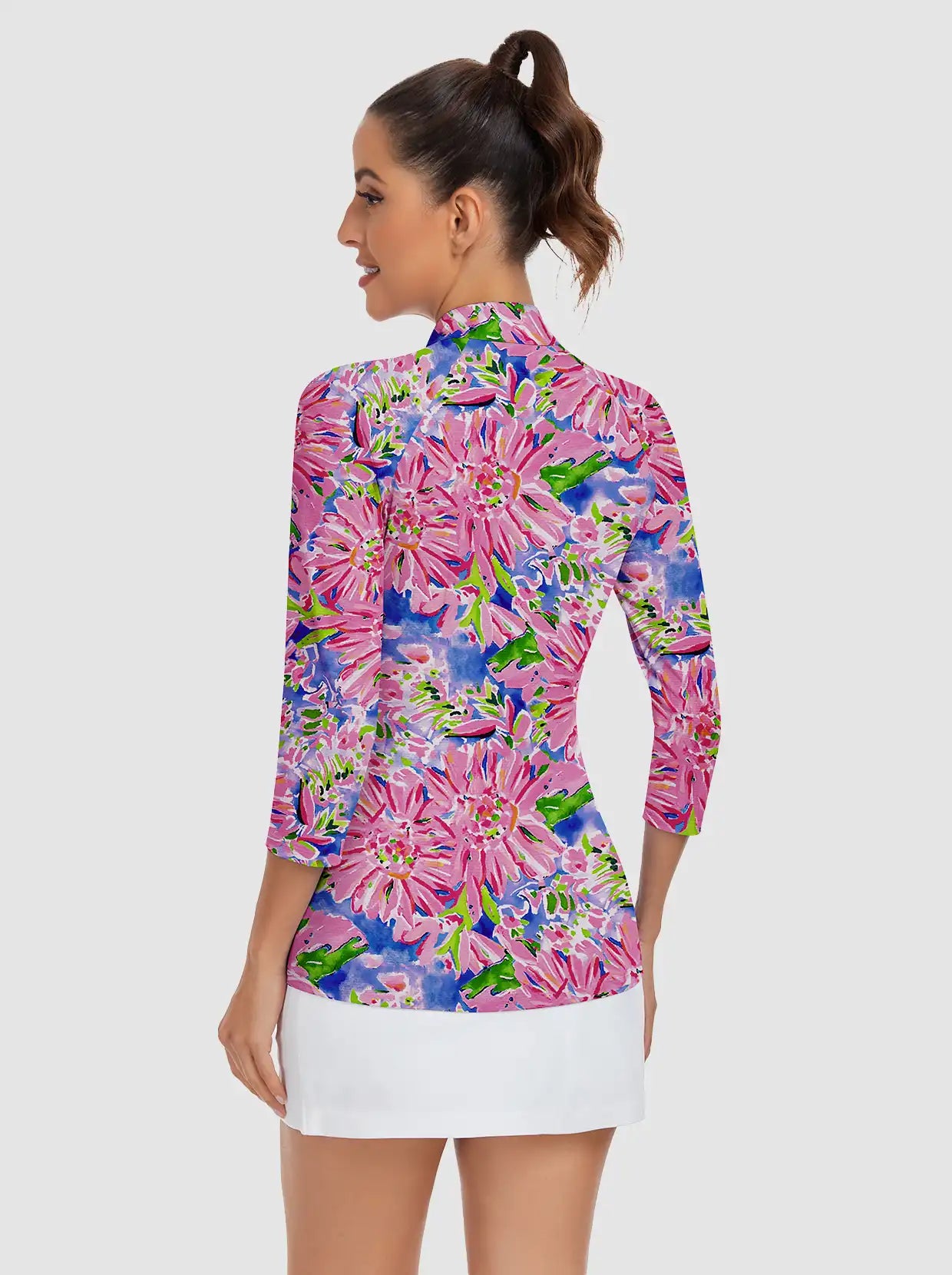 Discover the allure of Soneven's stylish 3/4 length sleeve golf shirts for women. Offering comfortable coverage for ample sun protection, these shirts are designed to elevate your golf game. With elegant and feminine designs, along with trendy prints, they add a playful touch to your golf outfits. V-neck button-down shirts, also perfect for daily wear, are easy to pair with straight long skirts and jeans.
