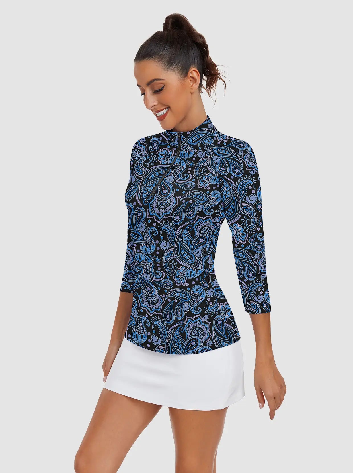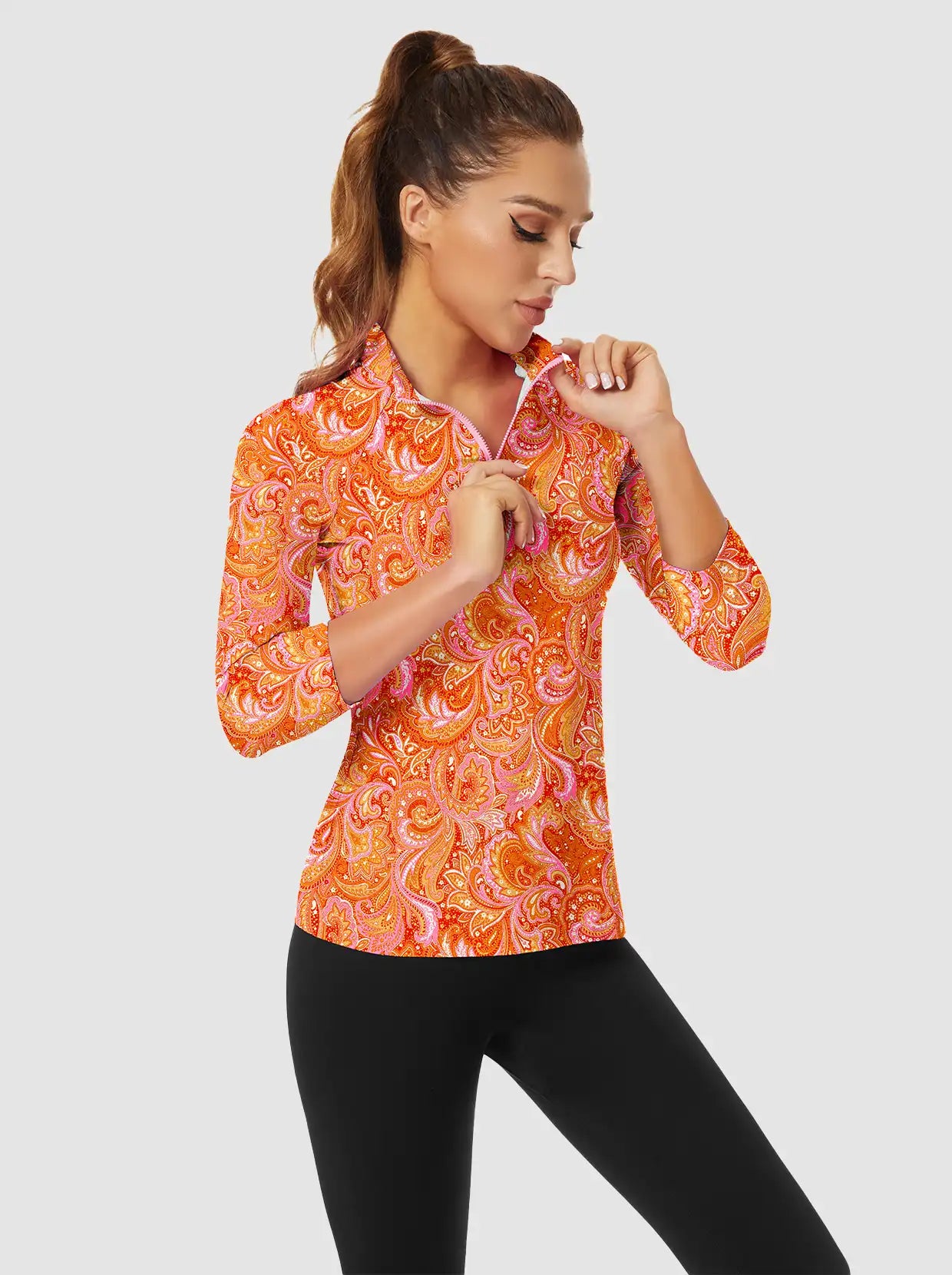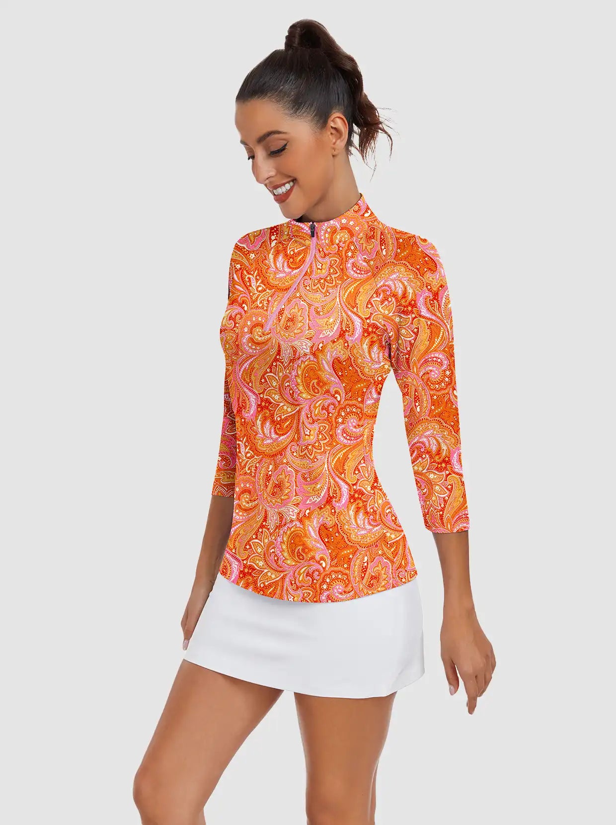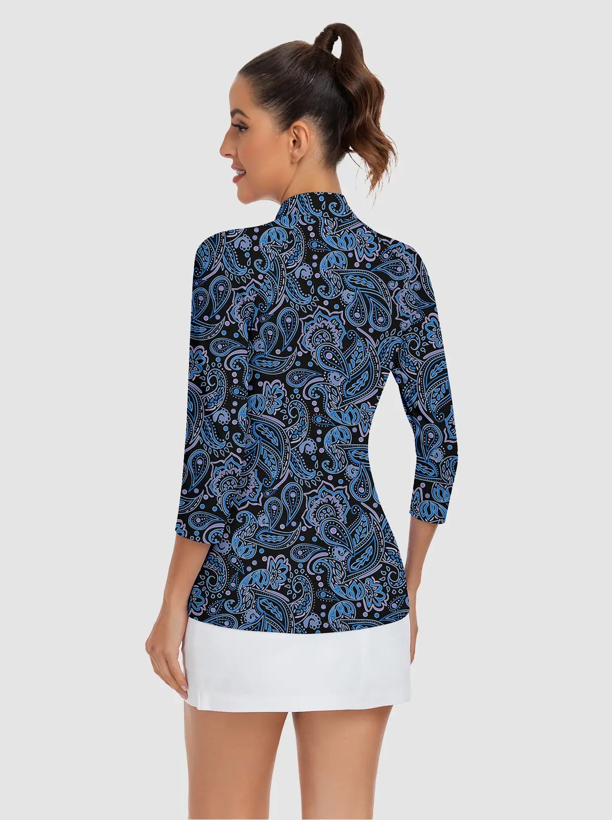 Discover the allure of Soneven's stylish 3/4 length sleeve golf shirts for women. Offering comfortable coverage for ample sun protection, these shirts are designed to elevate your golf game. With elegant and feminine designs, along with trendy prints, they add a playful touch to your golf outfits. V-neck button-down shirts, also perfect for daily wear, are easy to pair with straight long skirts and jeans.