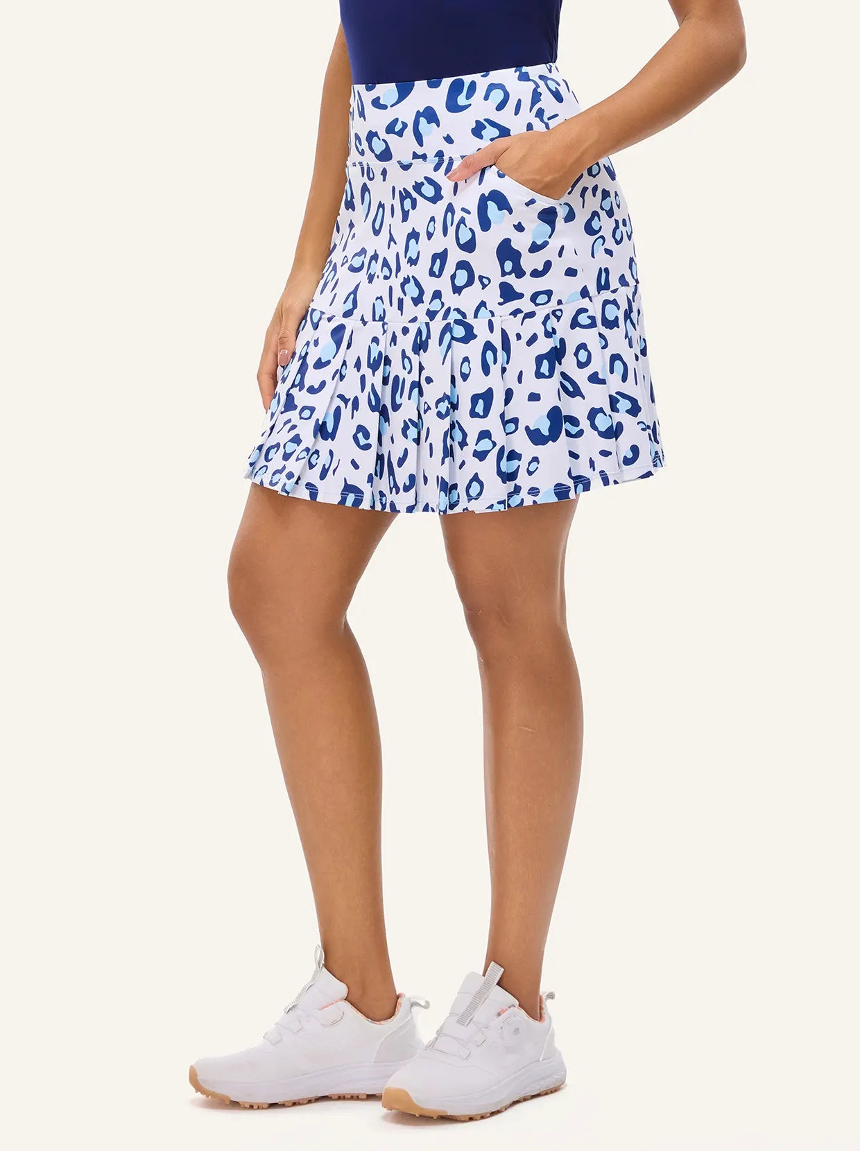 Blue Leopard 18" Pleated Active Skorts with Shorts and Pockets