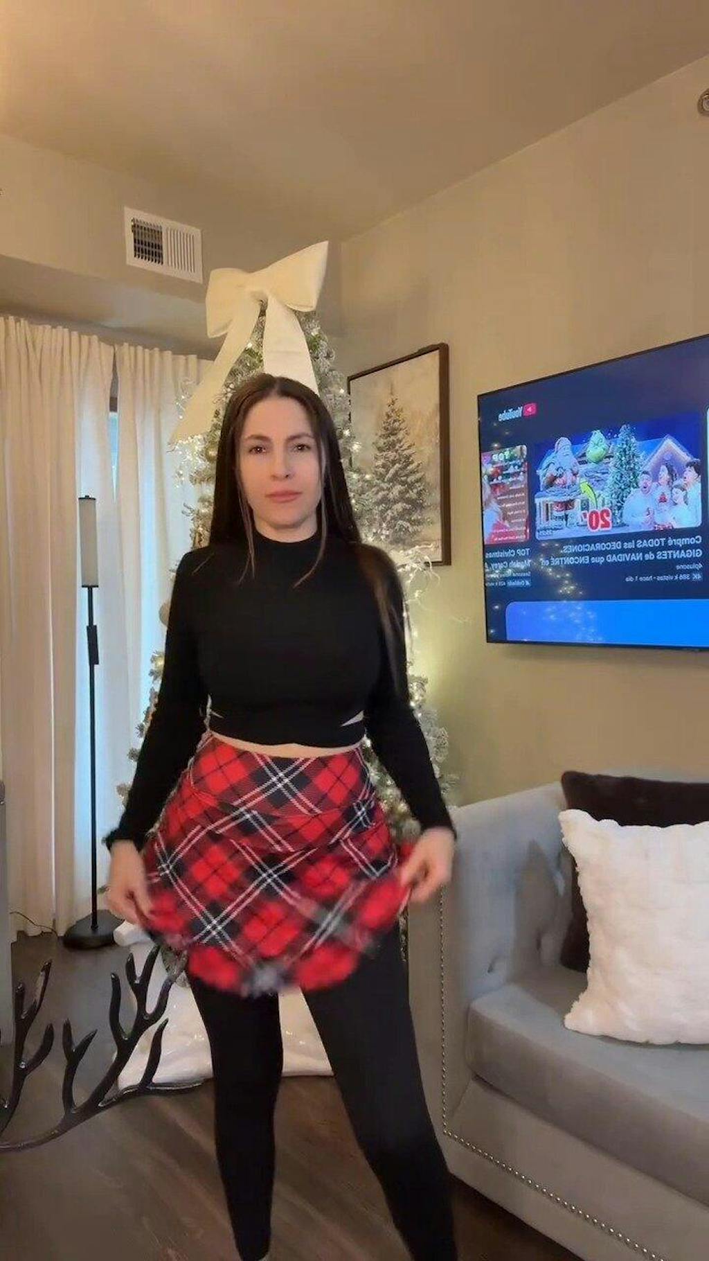 Spread holiday cheer with our festive pleated Athletic Skirted Leggings. Featuring soft and stretchy fabric, our athletic skirt leggings offer superior comfort. The double layer provides coverage and flair, while the side pockets keep your essentials within reach. The wide, flat waistband ensures a secure and comfortable fit. The festive red checkerboard pattern adds a touch of holiday cheer, making it perfect for Christmas parties with friends.