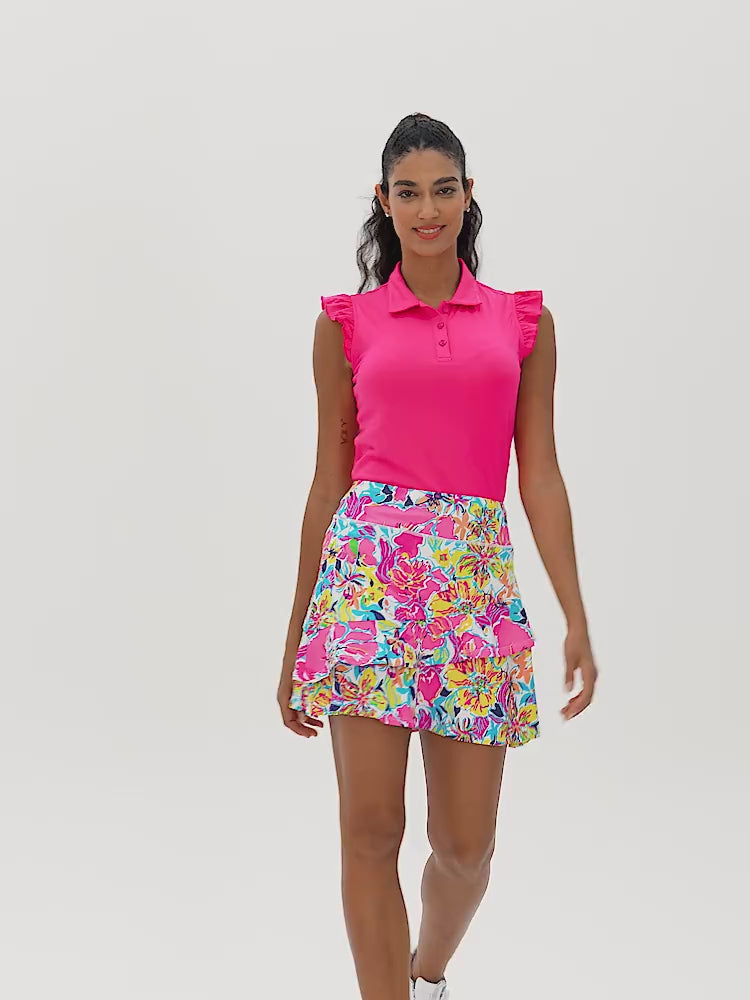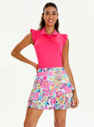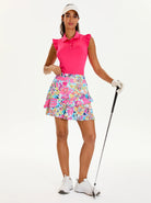 Upgrade your activewear with a touch of the tropics! This skort features a vibrant, colorful floral pattern that's perfect for warm-weather fun. It's designed for comfort and performance, featuring built-in shorts for added coverage and convenient pockets for your small essentials. Made from quick-dry, stretchy, and moisture-wicking fabric, it keeps you cool and comfortable from the court to the clubhouse. It's the perfect skort for golf, tennis, pickleball, and your next vacation.
