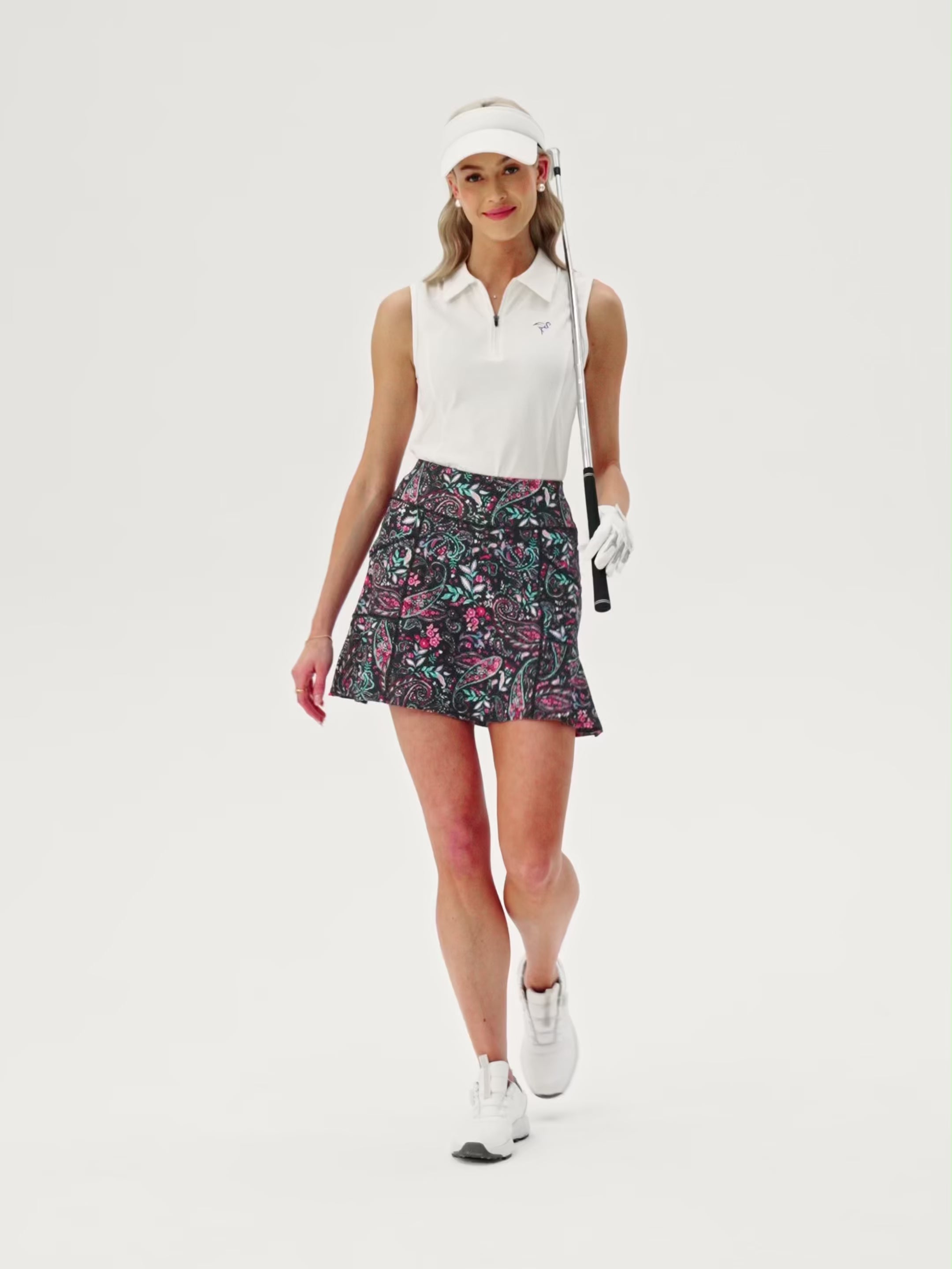 Swing in style and confidence with our Paisley Active Skorts. Engineered from a 4-way stretch fabric, it offers unrestricted movement and a comfortable fit. The smooth elastic waistband provides a secure, pinch-free fit, while the built-in shorts ensure total coverage and confidence. The breathable and moisture-wicking material keeps you dry through the most intense rallies.