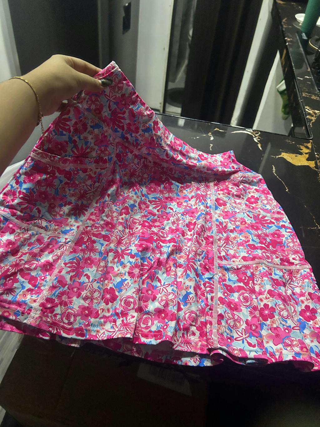 Infuse your workout wardrobe with a splash of color! Our Floral Print Skort offers both radiant style and exceptional performance. It features a beautiful rose-red floral pattern and a flattering pleated silhouette. Stay comfortable and confident with built-in anti-chafing shorts, and keep your essentials secure in the convenient pockets. The quick-dry, moisture-wicking, and stretchy fabric provides incredible flexibility and comfort, making it the perfect choice for golf, tennis, pickleball, or everyday wear.