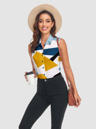Geometric Print Button-Down Sleeveless Polo Shirts For Women