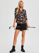 Get into the holiday with our Halloween Pumpkin Ghost V-Neck Button Down 3/4 Sleeve Polo Shirt. This festive and fun shirt is perfect for Halloween parties. Crafted from soft, moisture-wicking, and breathable fabric, it keeps you comfortable all night. The 4-way stretch ensures a perfect fit and freedom of movement, so you can dance and celebrate without any restrictions.