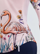 Pink Flamingo and Floral V-neck Button-Down 3/4 Sleeve Polo Shirt