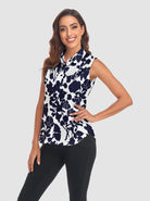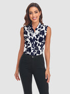 Look stylish and feminine in our Women Blue Flower Sleeveless Floral Button Placket Polo Shirts! Featuring a beautiful blue floral pattern, a flattering sleeveless design, and a classic button placket, this shirt is perfect for any occasion. Make a statement and feel confident in our high-quality, comfortable polo shirt.
