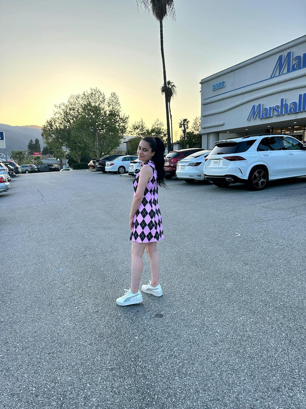Pink Checkerboard 33" Quarter-zip Sleeveless Dress with Shorts and Pockets