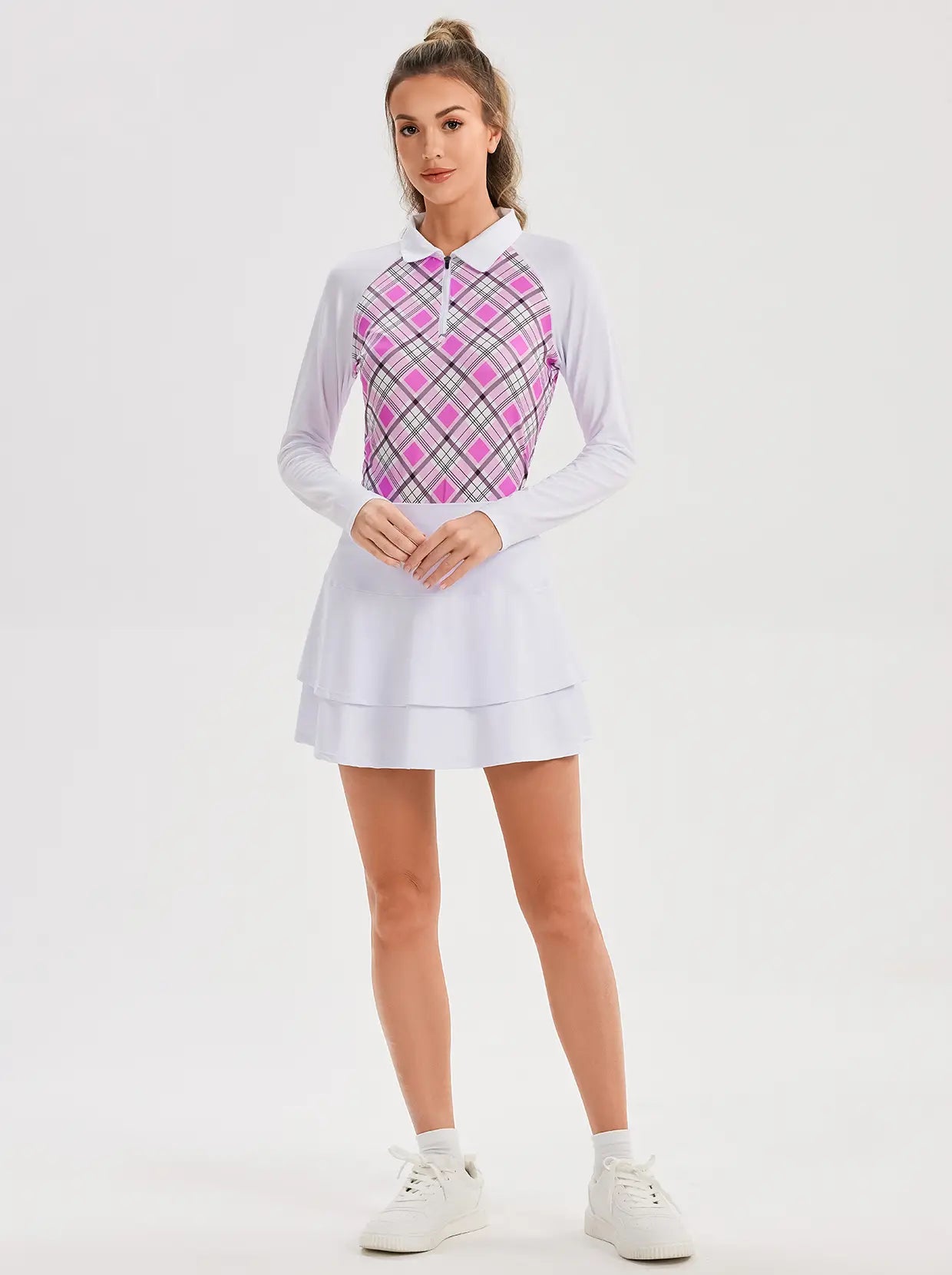 A women’s quarter zip is a versatile piece for golf, and styling it properly can help you feel comfortable and look your best on the course. Start by pairing it with well-fitted golf pants or a skirt for a balanced, athletic look. For a more relaxed approach, consider wearing it with comfortable women’s golf shirts underneath for added layering. The quarter zip can be worn open or zipped up depending on the weather, allowing for adaptability. When choosing a color, stick to classic neutrals like navy, black, or white for a timeless look, or opt for bold hues to stand out.