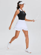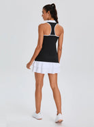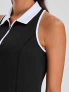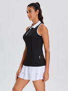 Black Quarter-zip Racerback Sleeveless Polo Shirt For Women