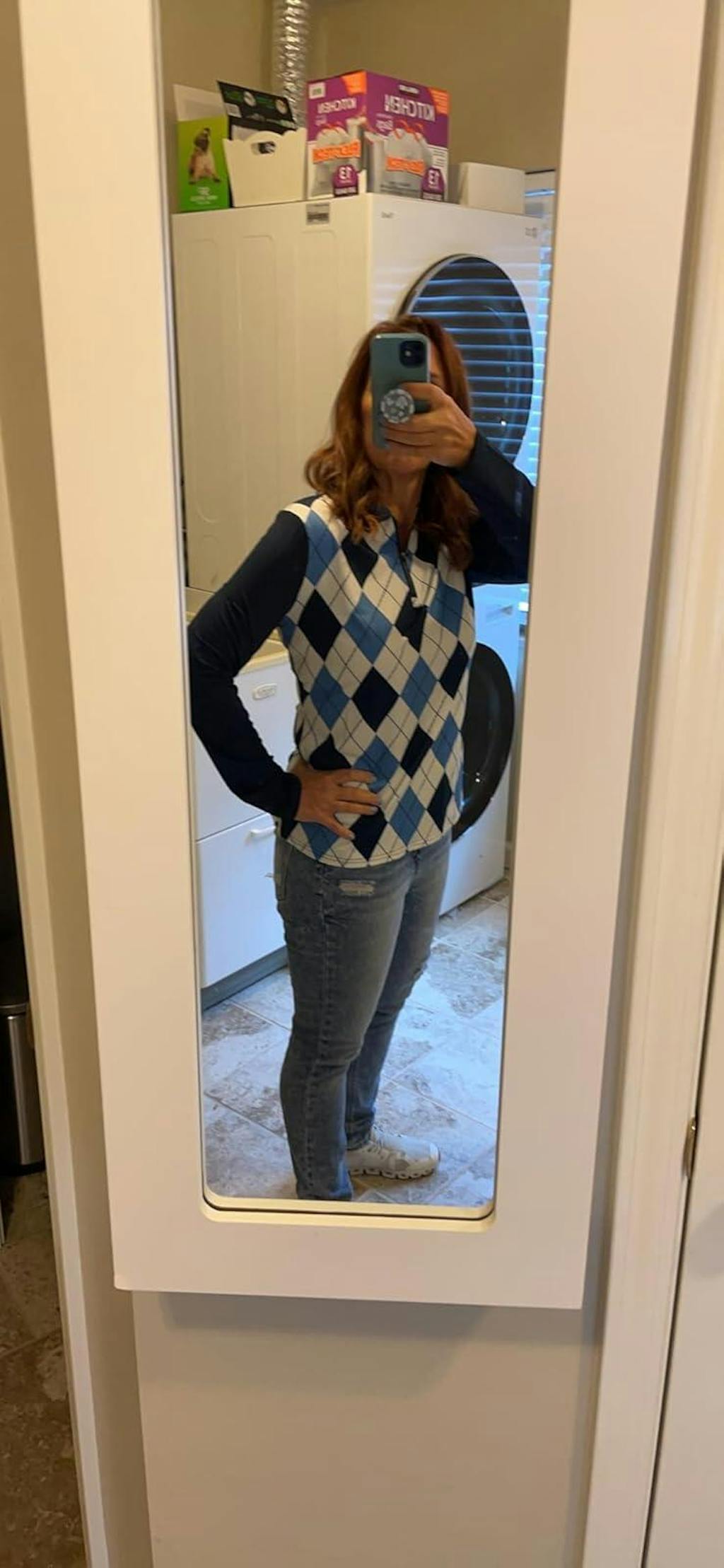 Blue and White Checkerboard Long-sleeve Golf Shirt