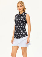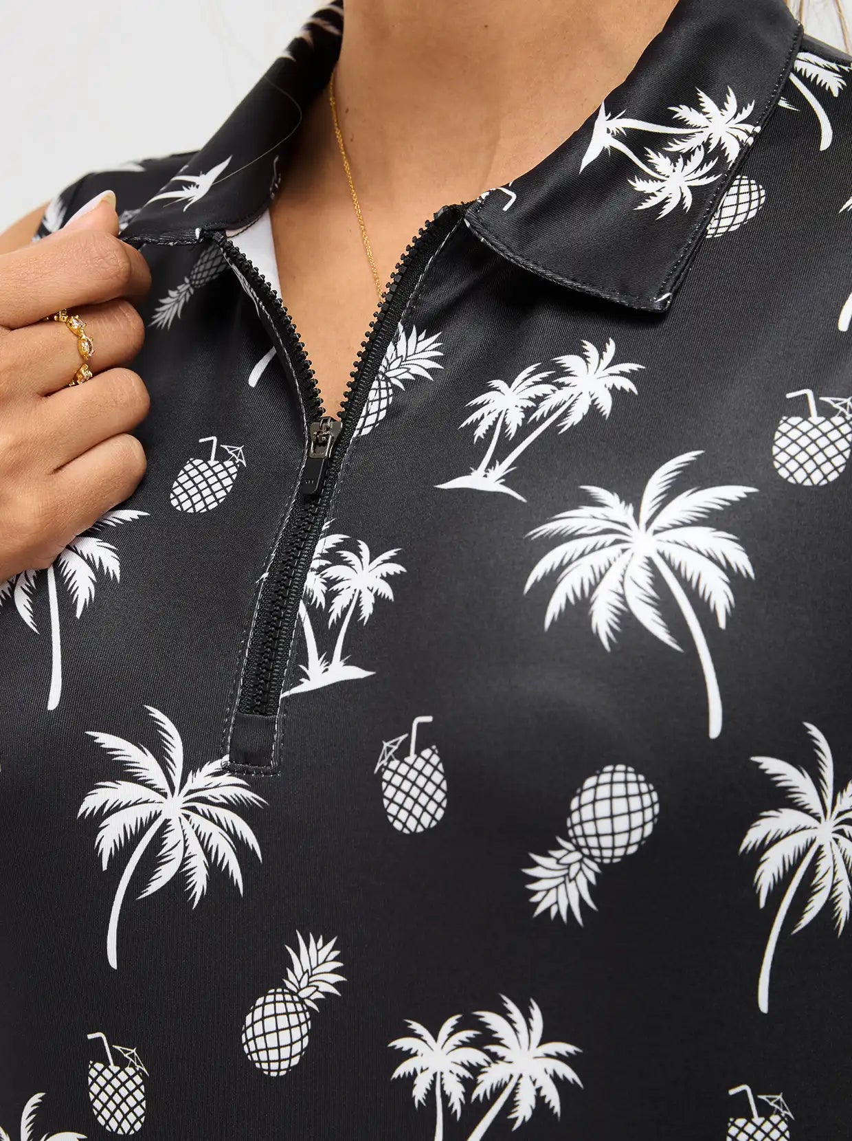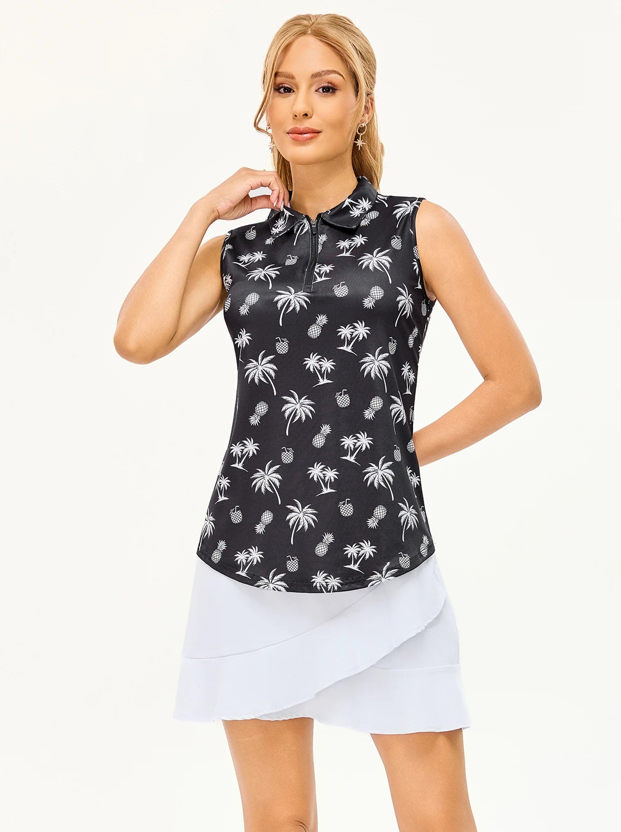Bring tropical vibes to your athletic wardrobe with this fun Quarter-zip Sleeveless Polo Top. Engineered with moisture-wicking, quick-dry fabric, you'll stay comfortable through every swing, serve, and sprint. The quarter-zip collar and sleeveless design keep you cool, while the 4-way stretch material moves with you. Ideal for sports or daily wear.