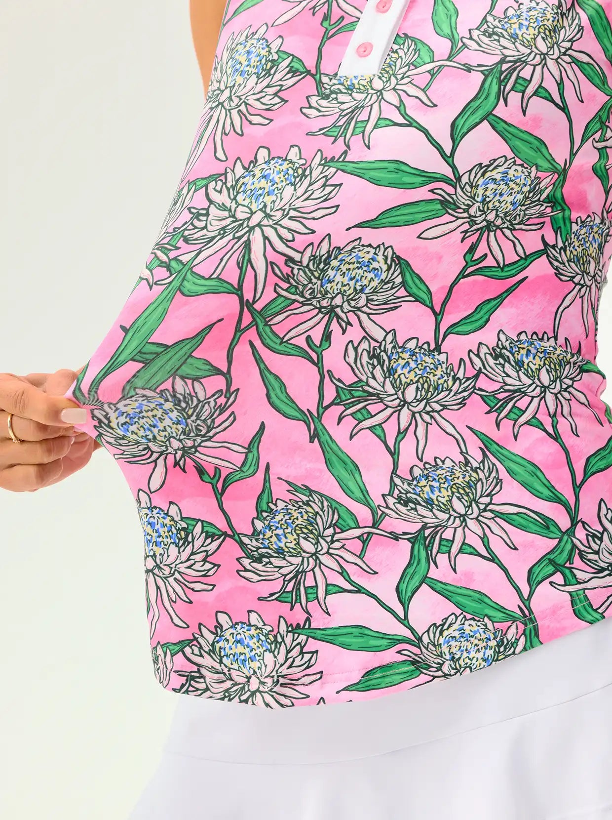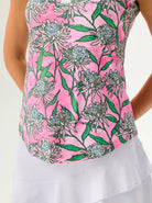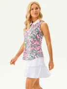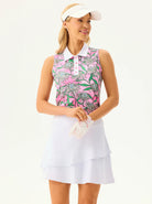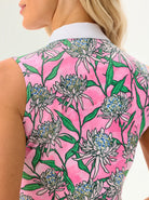 Tropical Flower Button-placket Sleeveless Polo Shirt