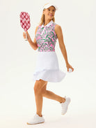 Elevate your game in our sleeveless golf polo. The 4-way stretch and moisture-wicking fabric offer unrestricted movement while keeping you dry and fresh. Designed with a button-placket and curved hem for a flattering, sporty silhouette. Perfect for golf, tennis, and daily wear.