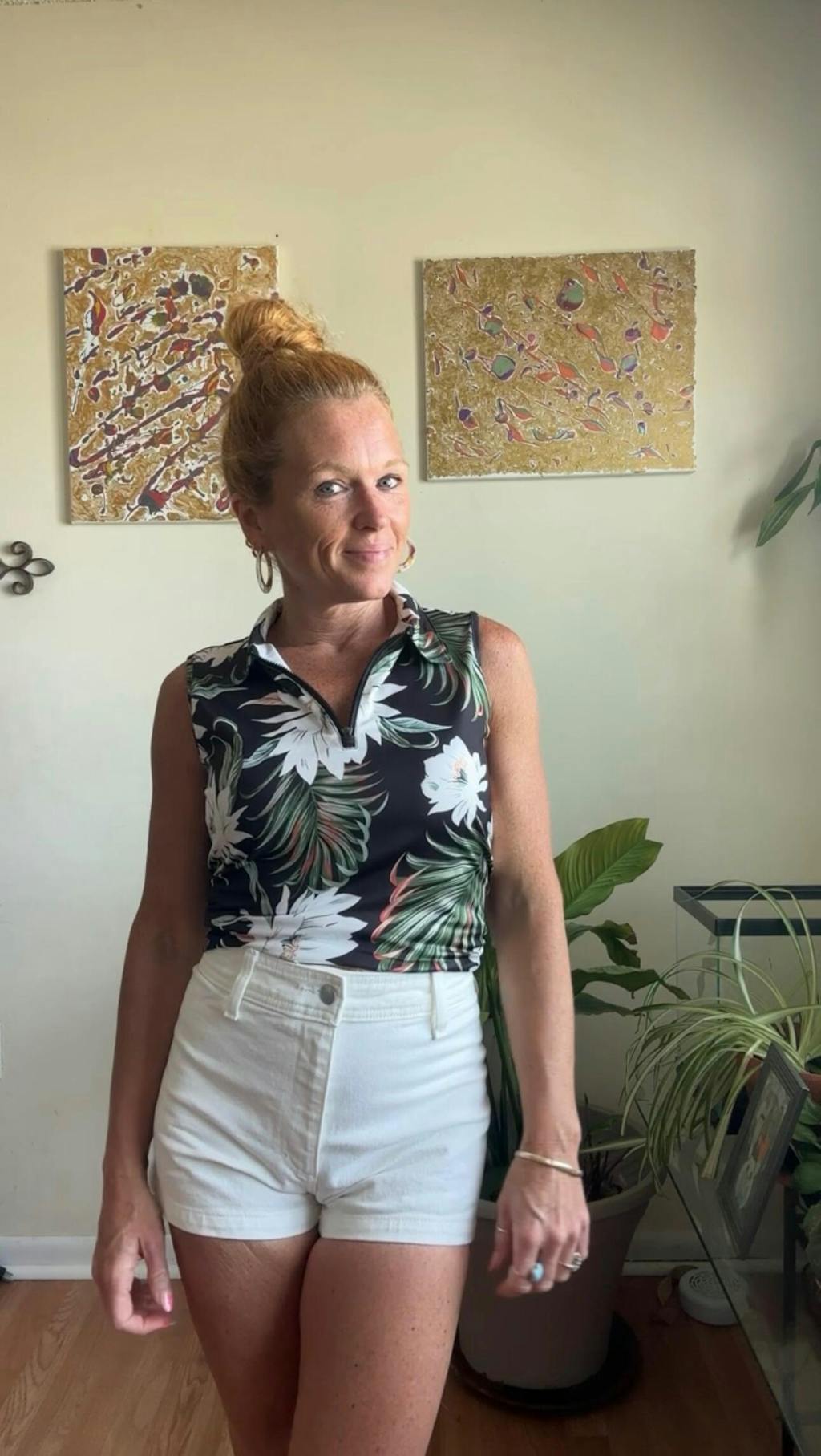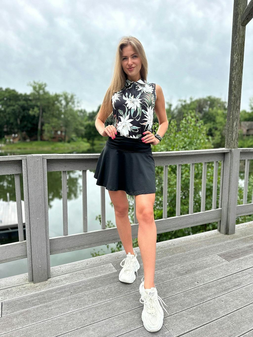 Hawaii is here! Step into paradise with our stylish and functional Hawaiian-inspired polo shirts. This sleeveless top features a vibrant floral and palm leaf print that's perfect for sunny days on the green or at the beach. The sleeveless design ensures maximum movement and airflow, while the breathable fabric keeps you cool and comfortable. The versatile design pairs effortlessly with skirts, skinny jeans, or shorts, making it a must-have for any tropical wardrobe.