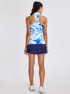 Blue Abstract Quarter-zip Racerback Sleeveless Polo Shirt For Women