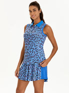 Blue Leopard Button-placket Sleeveless Polo Shirt