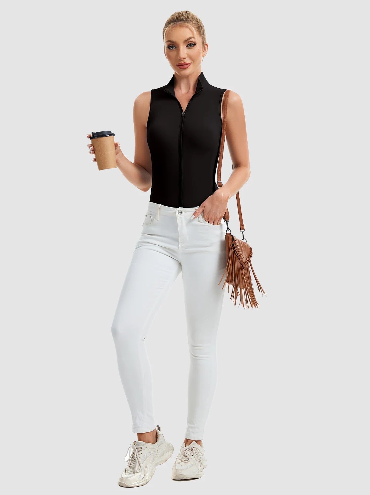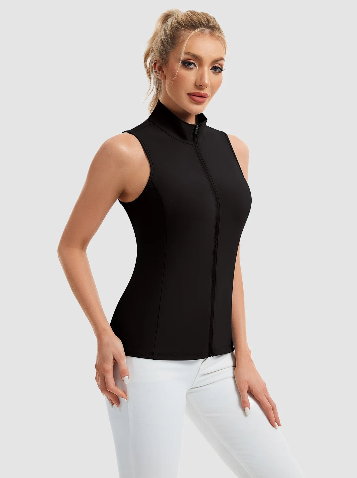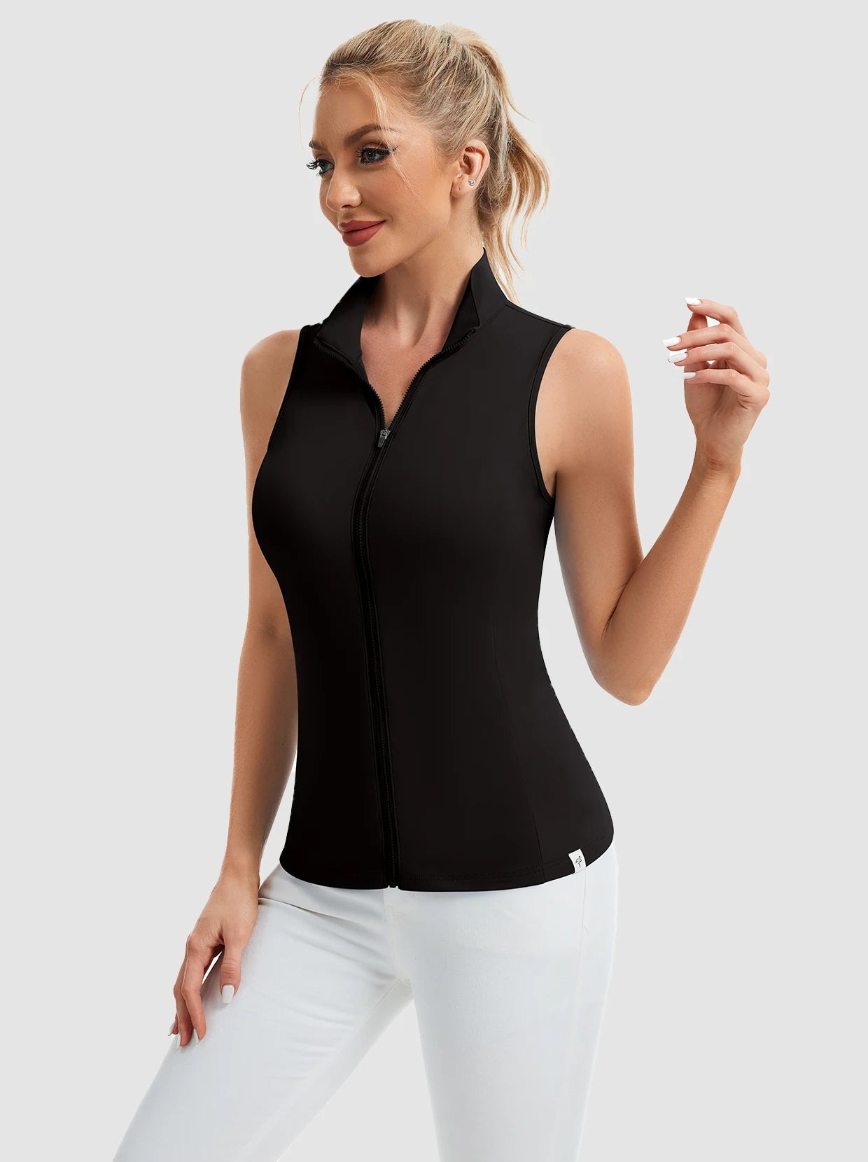 Full-zip Stand-collar Sleeveless Polo Shirts