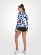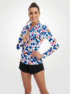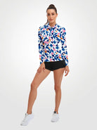 Geometric Pattern Quarter-zip Long-sleeve Polo Shirt for Ladies