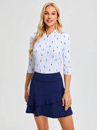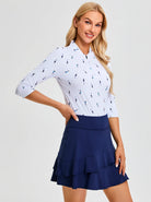 Golfer Pattern Quarter-Zip 3/4 Sleeve Golf Shirt for Women