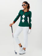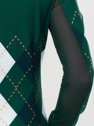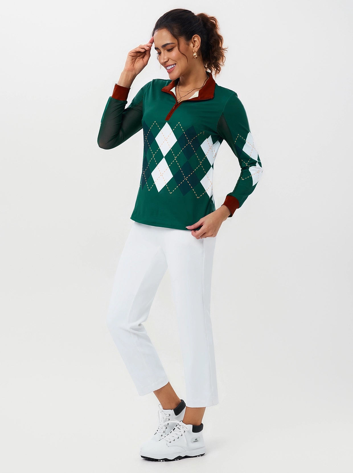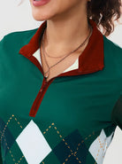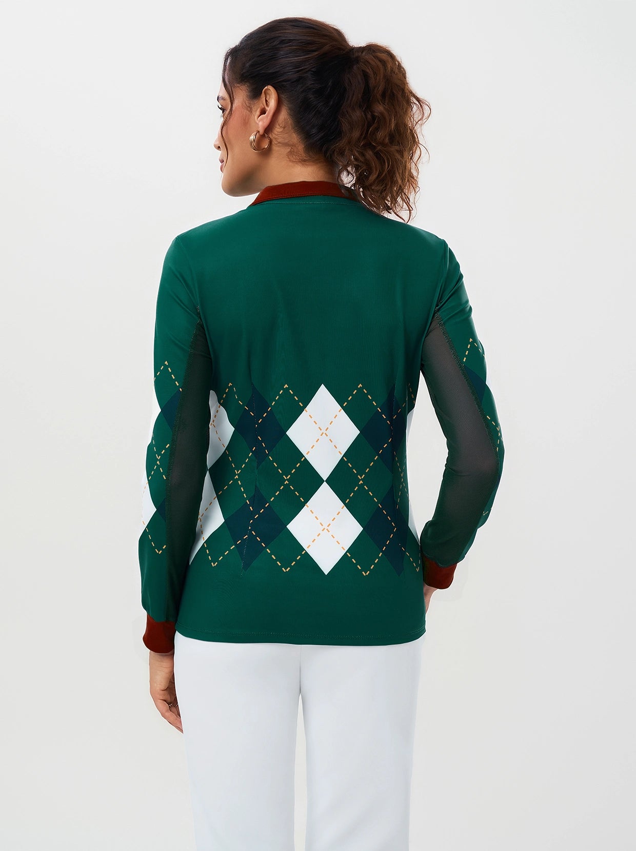 Green Checkerboard Quarter-zip Half-Mesh sleeve Polo Shirt (SHIP IN 5 DAYS)