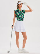 Green Shamrock Ruffled Sleeveless Polo Shirt For Women