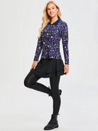 Halloween Purple Hat and Skull V-neck Long-sleeve Polo for Women